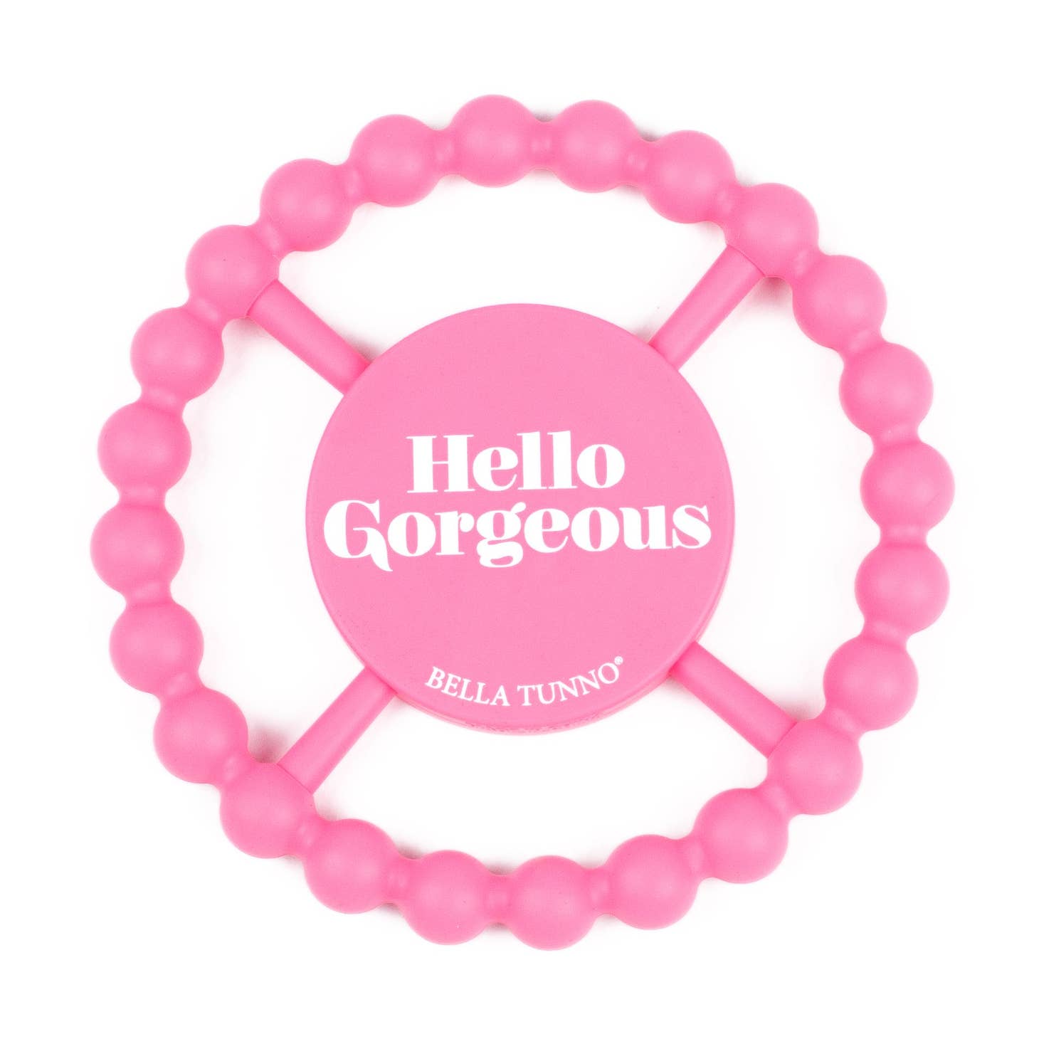 Our baby teething toy is a silicone teether that will soothe sore gums and provide sensory stimulation. We designed this teether with one thing in mind: teething relief for baby that translates into peace and quiet for parents. The silicone beaded material provides an attractive texture for mouthing and teething. The Happy Teether is easy to grip from any angle and gives the right amount of resistance to provide pain relief for early teeth. Like every other product, the Happy Teether was designed to solve a problem, but we wouldn’t be Bella Tunno if we didn’t make it fun. So in over 50 color and saying options, we dare you not to laugh when you’re picking the perfect one. The Happy Teether will quickly become your go-to for teething relief.
