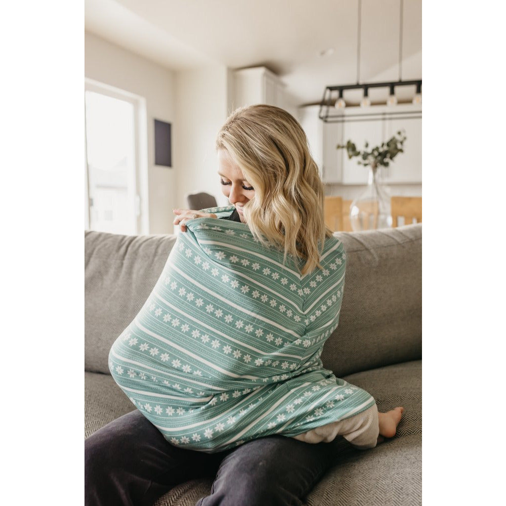 Stretchy fabric fits most all car seats, shopping carts, high chairs and nursing mothers. It can also be a trendy infinity scarf!
