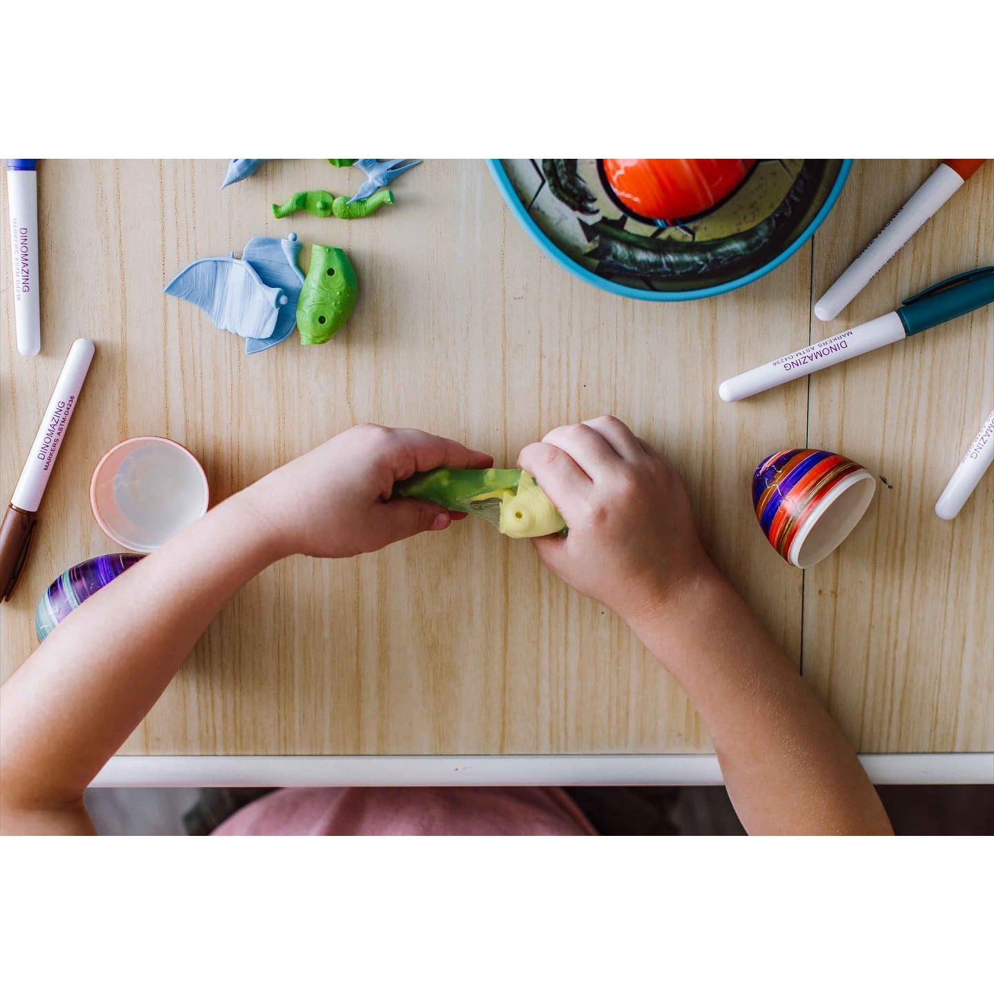 Decorate this blank egg then crack it open for non-stick slime and a toy dinosaur that pulls apart for a dino swap! Which Dino will you get? Triceratops, Stegosaurus, Pterodactyl, T-Rex, Velociraptor, Ankylosaurus, Spinosaurus, Parasurolophus, Brachiosaurus, or the Utahraptor? Trade the tail or lend a leg with other DinoMazing collectors. Head, tail and legs are interchangeable for a dynamic creation to impress friends and parents! Makes a great birthday party parting gift or stocking stuffer. Sold separately.