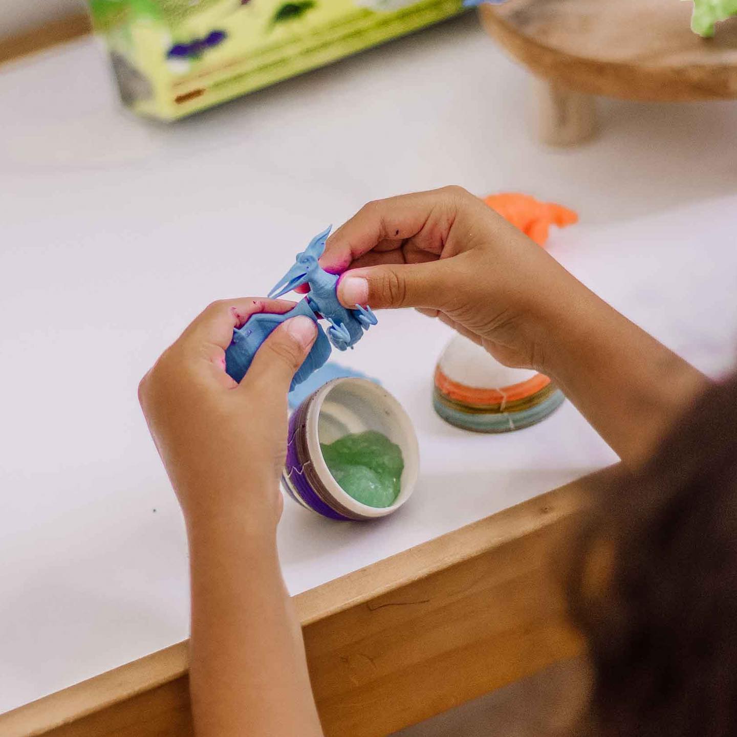 When finished, crack your dino egg open to reveal slime and your mystery dinosaur!