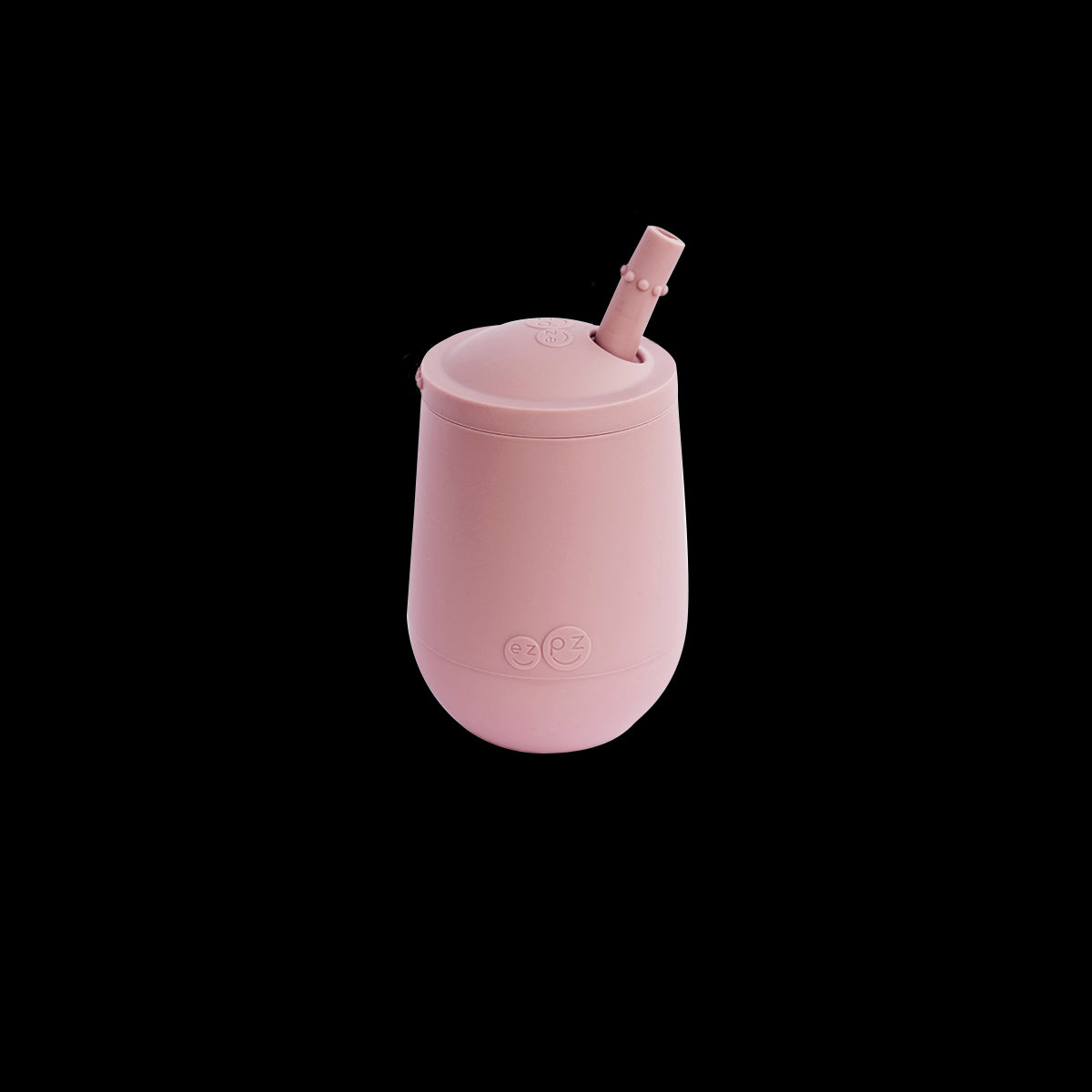 Learning to drink from a straw is an important developmental milestone that develops lip rounding and promotes speech development. The ezpz Mini Cup + Straw Training System teaches toddlers to drink from an open cup and safely learn to use a straw. 9 months+ - Portion Size: 4oz - Helps toddlers succeed with the 3-Phase Developmental Drinking Method (Dawn Winkelmann, M.S, CCC-SLP) - Straw serves as both a Beginner Training Straw + an Advanced Training Straw - Soft silicone protects baby / toddlers developing gums + teeth - Reduces spillage - Weighted base and tactile bumps provide topple resistance - Made from high quality silicone that is BPA, BPS, PVC and phthalate free - Dishwasher and microwave safe