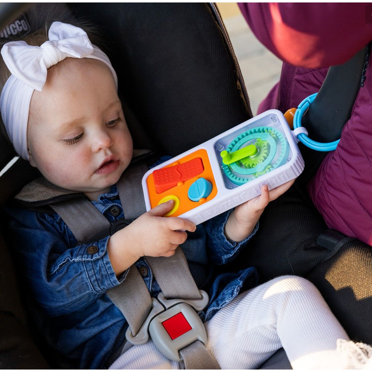 - Clip ring easily attaches to car seats, strollers, diaper bags, or anywhere!