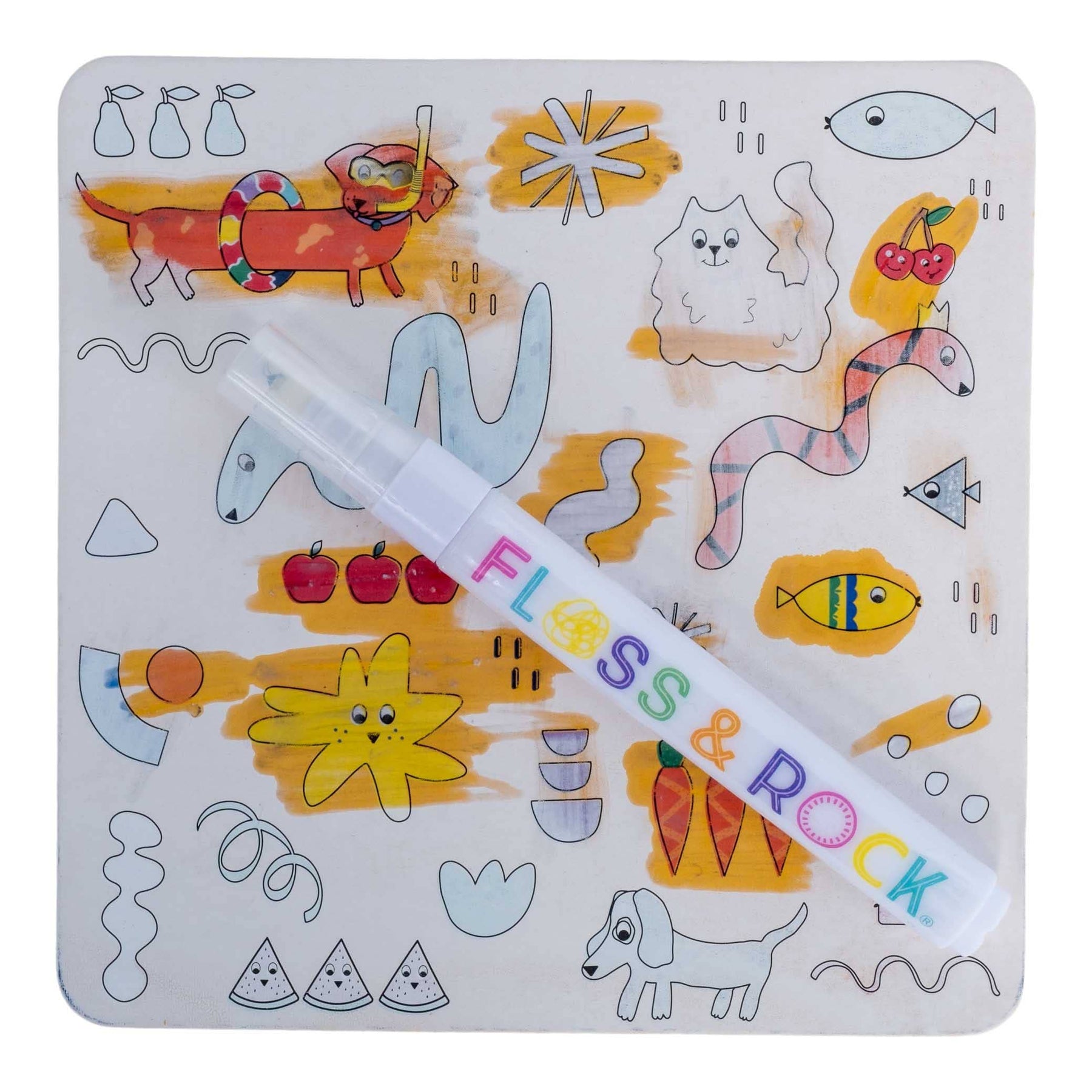 No more worries over felt tip marks on the walls with these colour changing water cards! This Pets pack contains 10 fun reusable cards and a water pen. Simply fill up the pen with water and colour away to see the magic happen! Each card has words, numbers or scenes to colour in. Nice and compact and perfect for travel and taking out and about. FEATURES: Colour in without any mess. Perfect for travel and taking out and about. Includes 10 cards and a magic pen. Reusable over and over again. Eco-friendly. Recommend age 3+ ECO-FRIENDLY BENEFITS: FSC certified Printed with soy inks All card recyclable DIMENSIONS: Cover 19cm x 18cm x 2cm. Cards 15cm x 15cm 47P5931