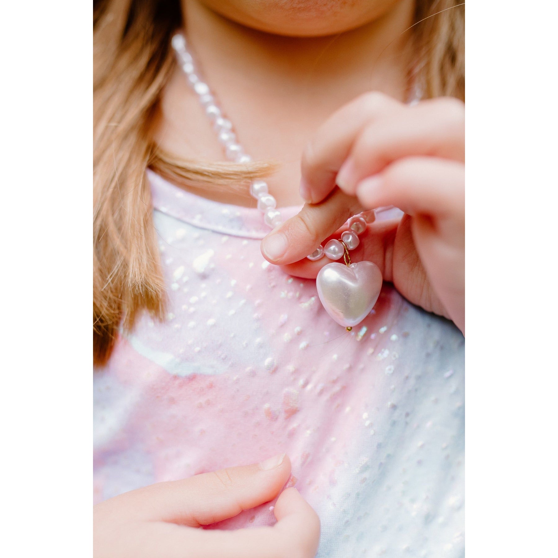 There's nothing better than a pink pearl heart necklace to fill your day with peace and love!