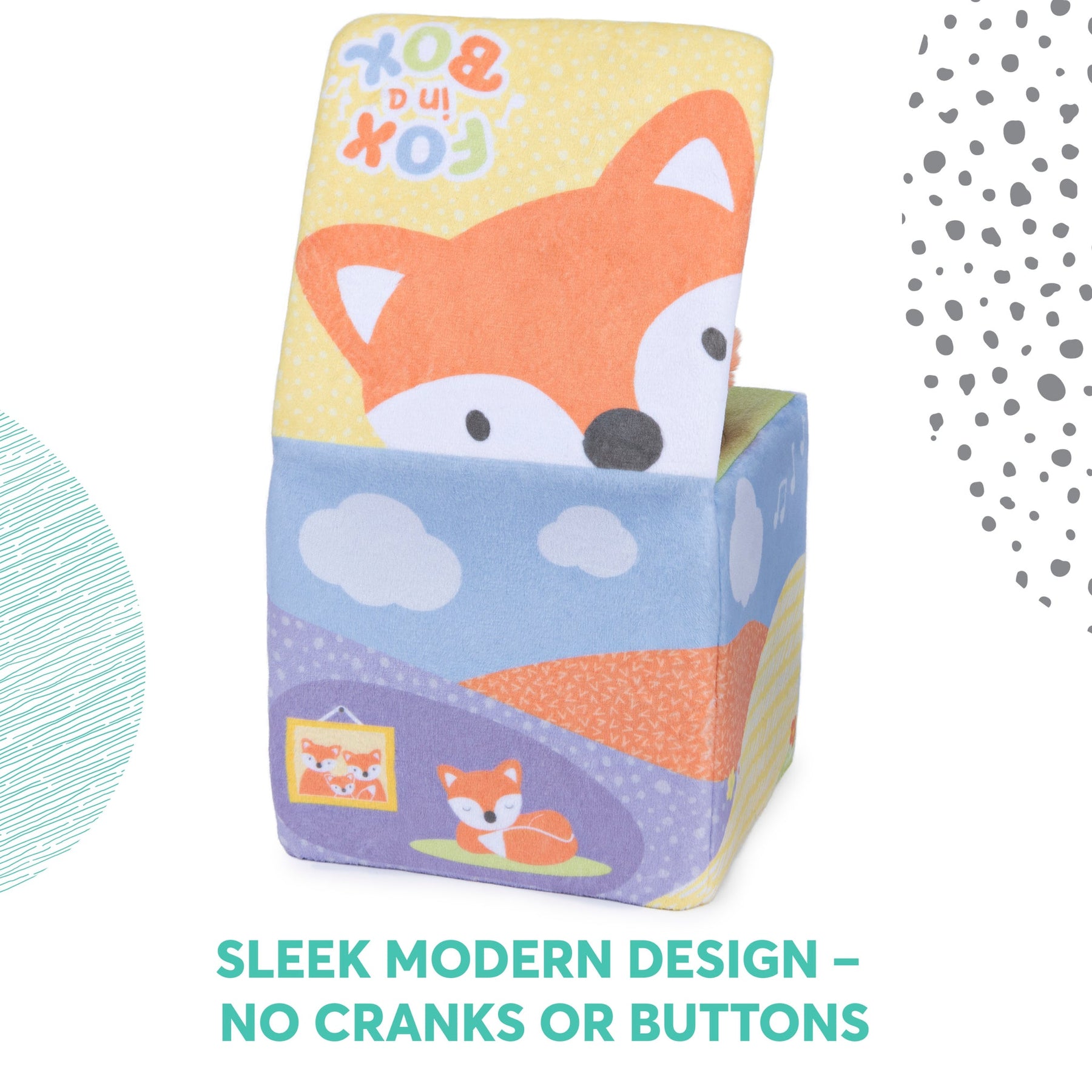 Fox in a Box is also adorned with modern, on-trend pastel colors and playful fox illustrations on all sides, making it the perfect nursery display piece and an impressive gift for new mothers. Fox in a Box is surface-washable for easy, convenient cleaning. Do not attempt to machine-wash or apply harsh chemical cleaners. Appropriate for babies ages six months and up.