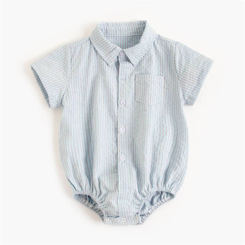 Howkidsss Baby Boys Striped Onesie Short Sleeve Romper, Grey-Blue