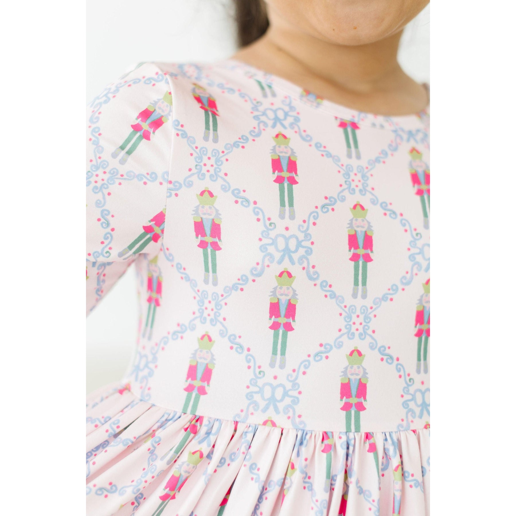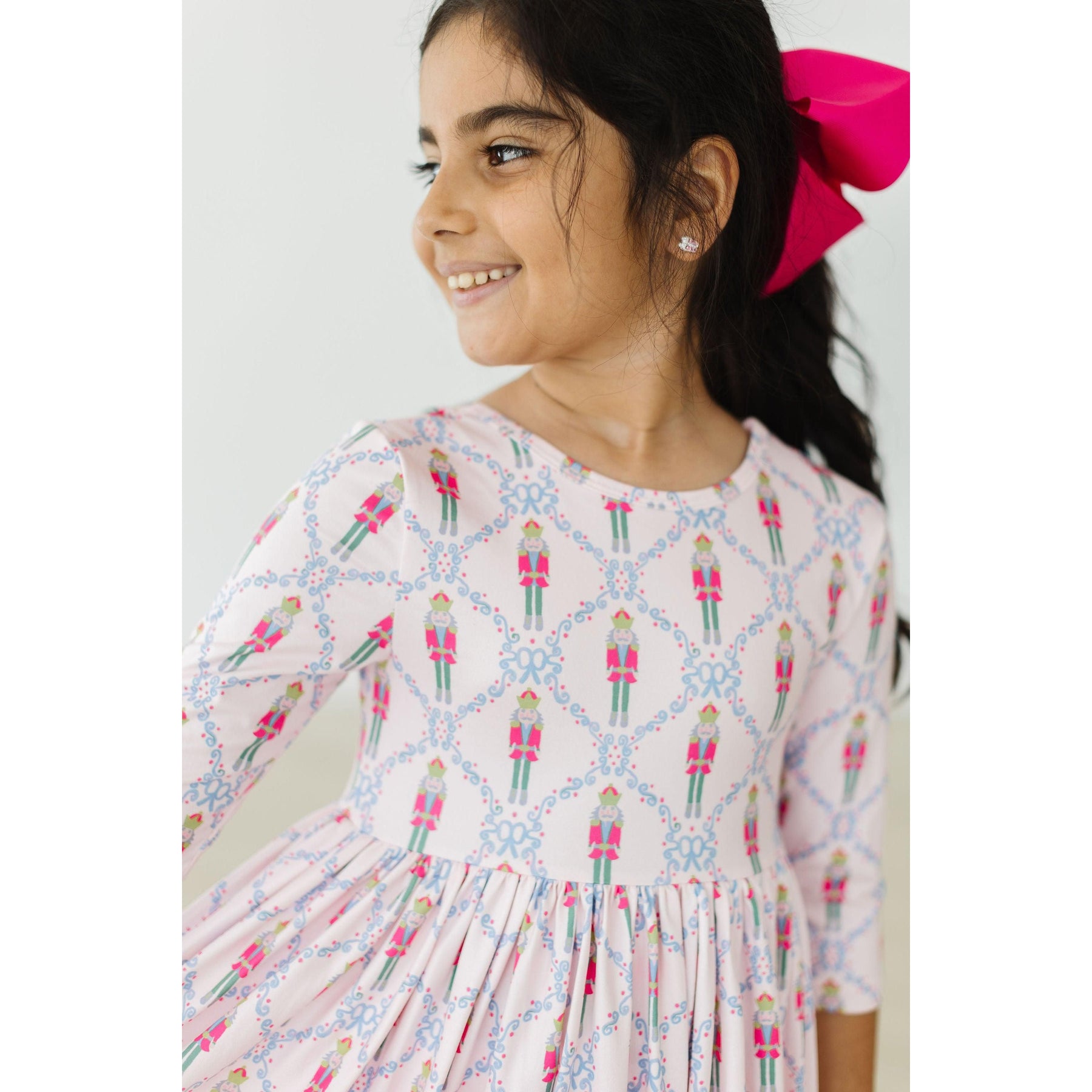 The perfect dress for Christmas parties, school programs and Nutcracker performances. Designed by a mom and a dad. Mom wanted something twirly, comfortable and easy to wash. Dad wanted something easy to get on his chubby, big headed toddler. Designed with a scoop back for quick on and off, and higher neckline for modesty. Pair with Twirl Shorts or Leggings for the perfect everyday outfit. Matching Twirl Bodysuit available for sister, cousin or BFF.