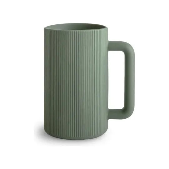 Simplify the evening routine with our bath rinse cup that allows parents to wash away suds and bubbles with a controlled water stream. With a textured exterior and a convenient handle, it's easy to keep a secure grip while pouring. Made from food grade silicone and featuring calming colors, the Mushie bath rinse cup helps children enjoy bath time and end the day extra clean.