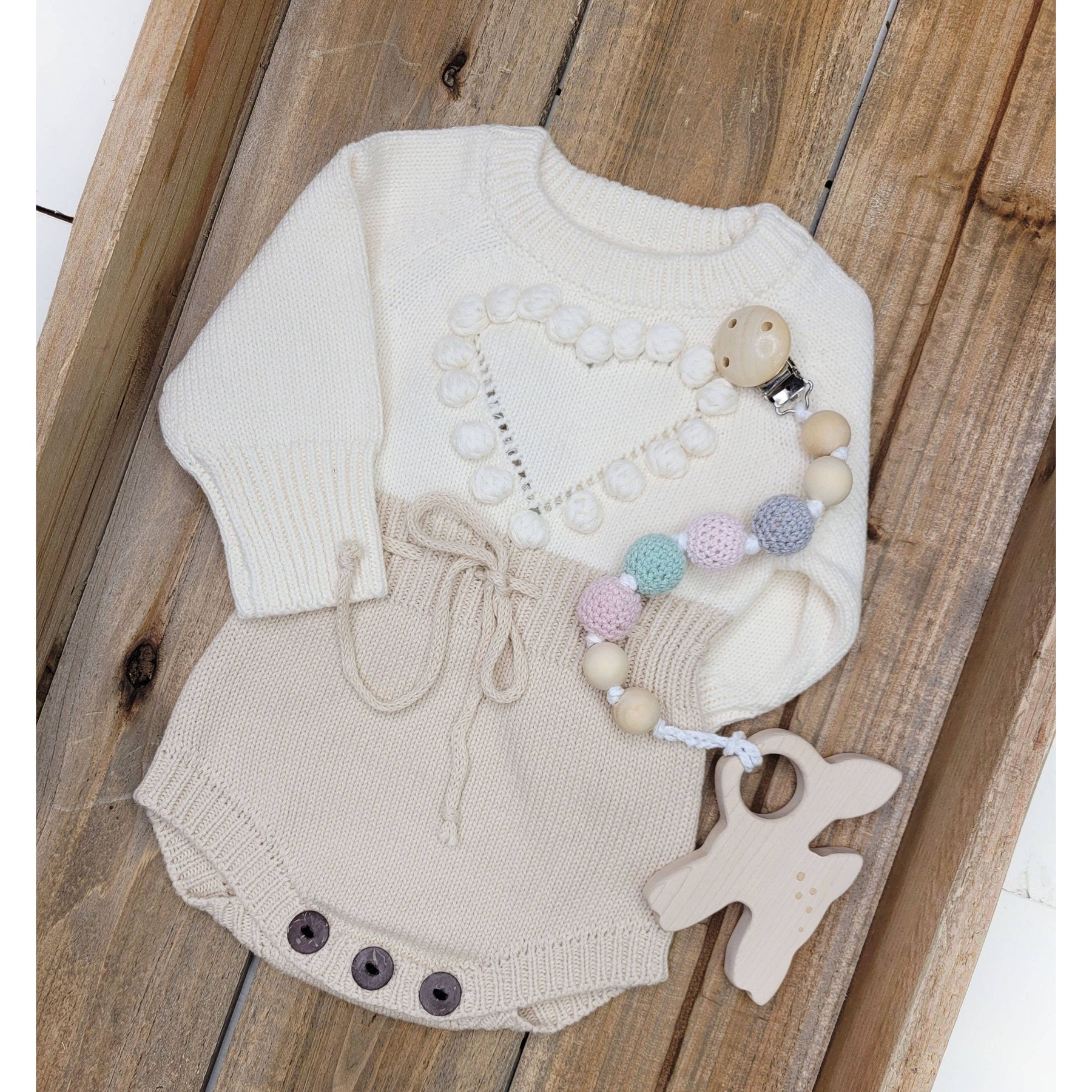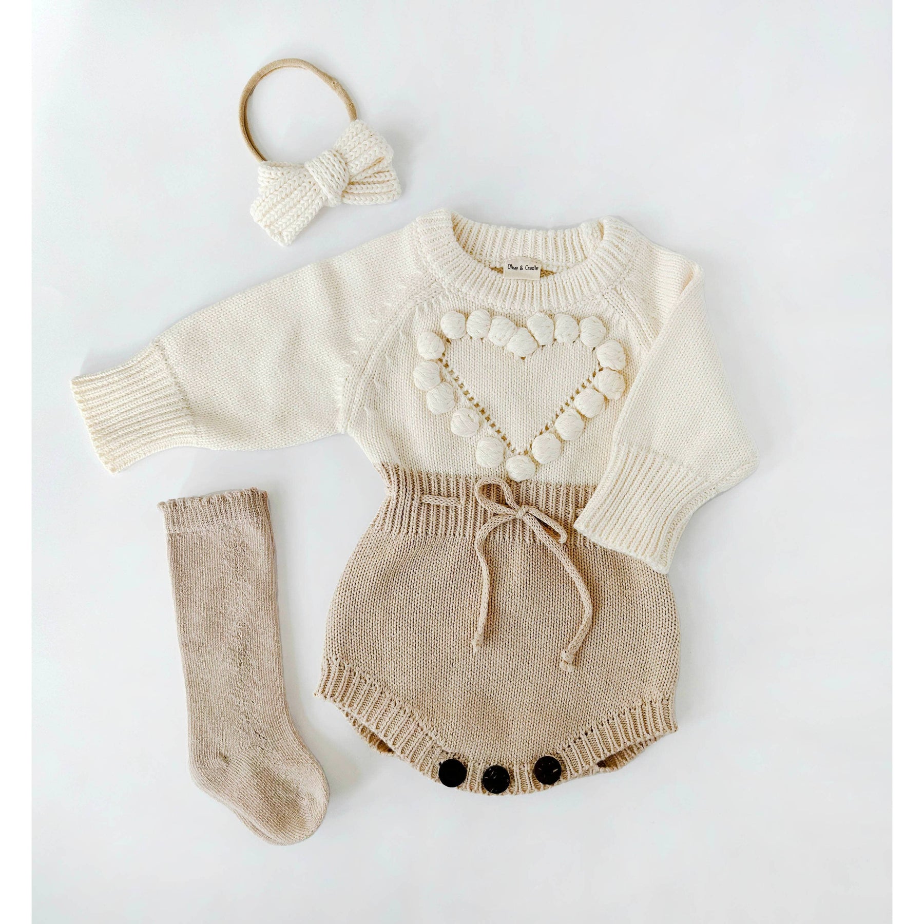 OLIVE & CRADLE - Baby Girl HEART Sweater Romper Knit Outfit| combo options
