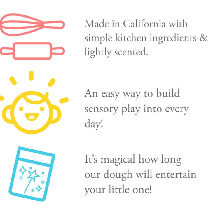 The Magical Dough is batch-made in our shop, and jarred by hand. The dough is guaranteed to last up to 6 months shelf life. Once opened, it last even longer! Small parts, ages 3+