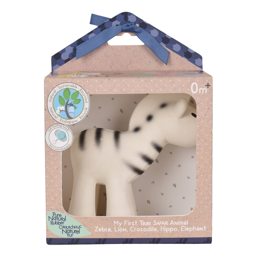 Tikiri Toys Zebra - Natural Organic Rubber Teether, Rattle & Bath Toy