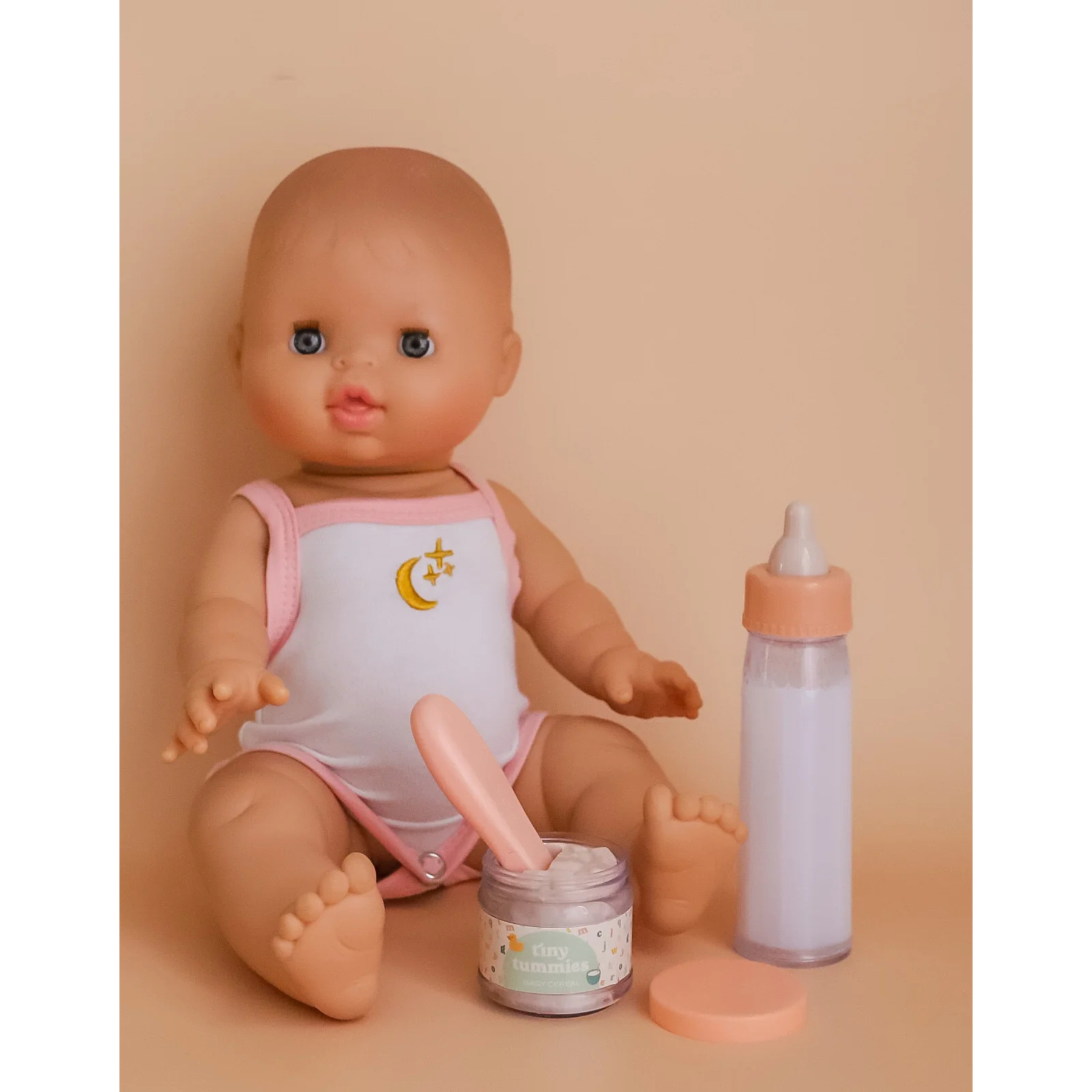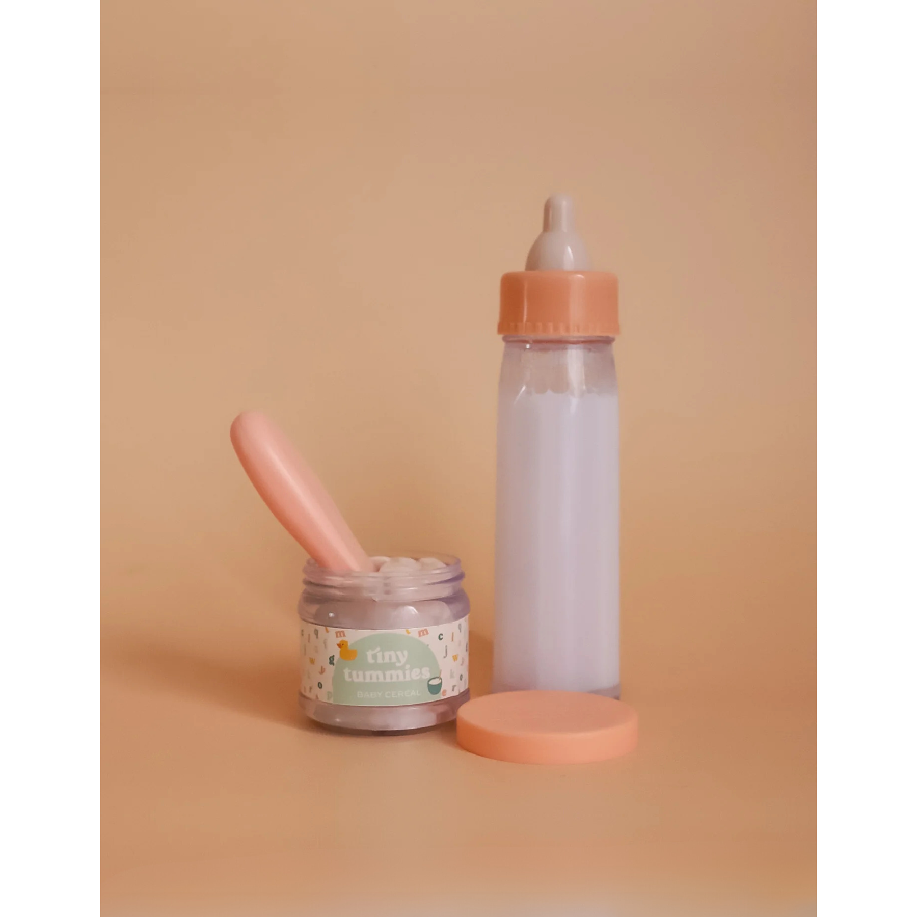 Here is the perfect set for your doll! Feed your doll with Tiny Tummies Baby Cereal and complete the fun with our magical milk bottle. Includes: Tiny Tummies Baby Cereal, Magical Food Jar for Dolls Magic milk bottle Specificities : Made in China to Oceania, USA and European standards. Suitable for ages 3 and up; Doll not included Designed in Australia, made in China