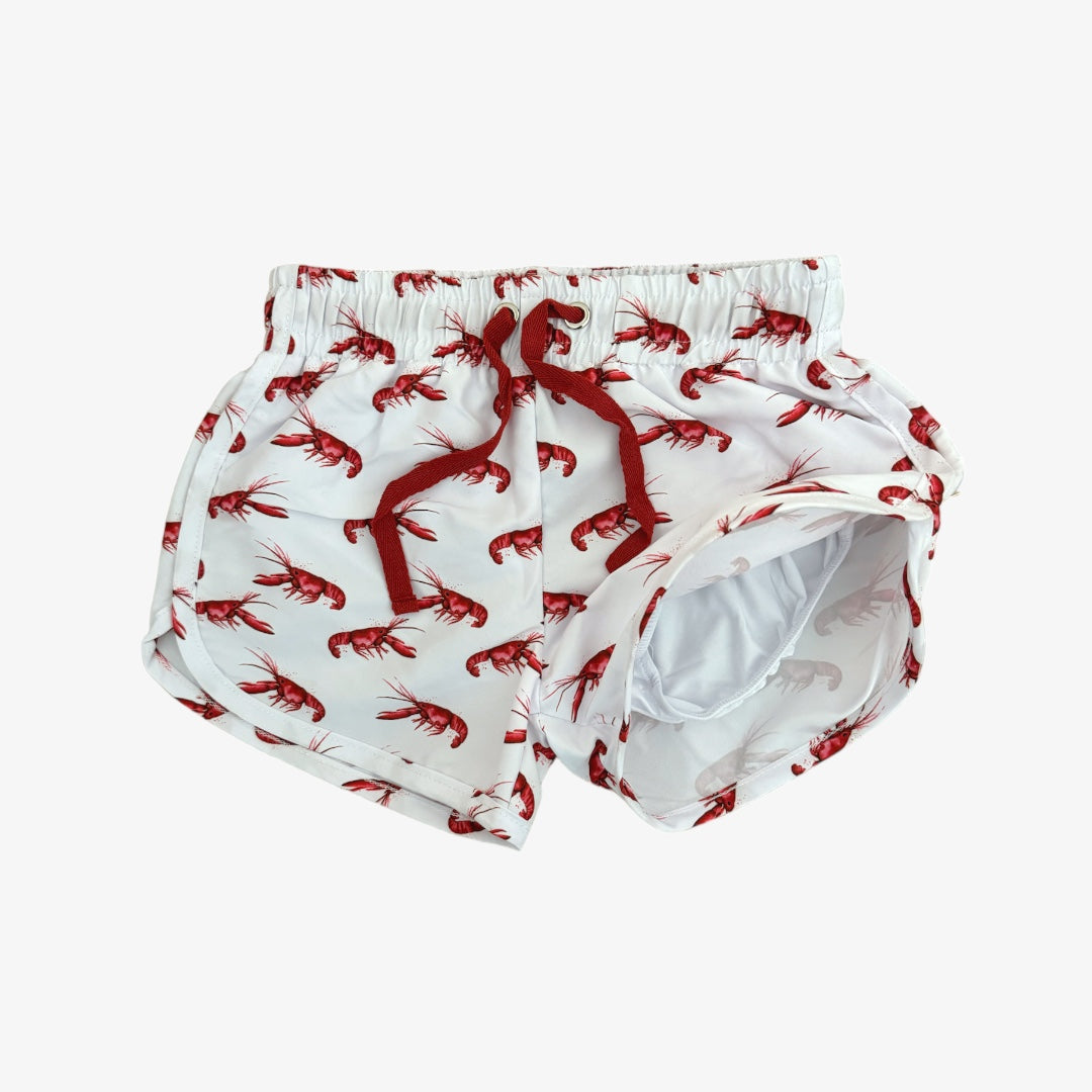 Elevate your little one's swimwear collection with our Jackson Swim Shortie in our 'mudbug' all over crawfish. Designed for both style and comfort, these shorts feature a functional drawstring and are fully lined for added practicality. From sizes 0-3 months to 8 years old, these swim shorties ensure a perfect fit for every adventure!