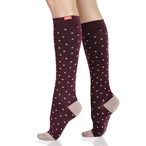 VIM & VIGR Cotton 15-20 mmHg Compression Socks for Women & Men (Plum & Mauve Petite Dot)