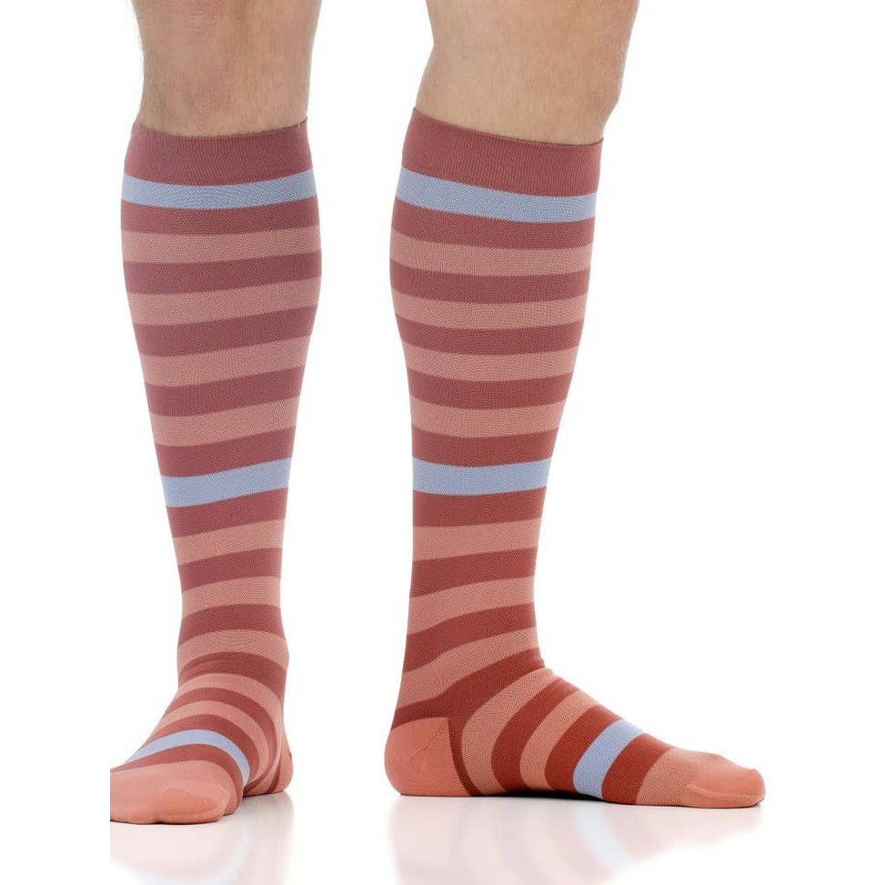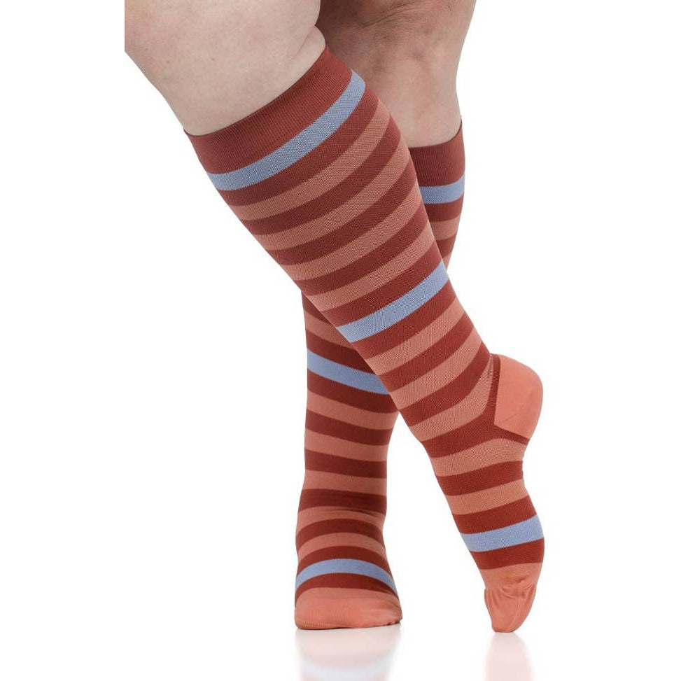VIM & VIGR Nylon 20-30 mmHg Graduated Compression Socks (Rust & Salmon Thick Stripe)