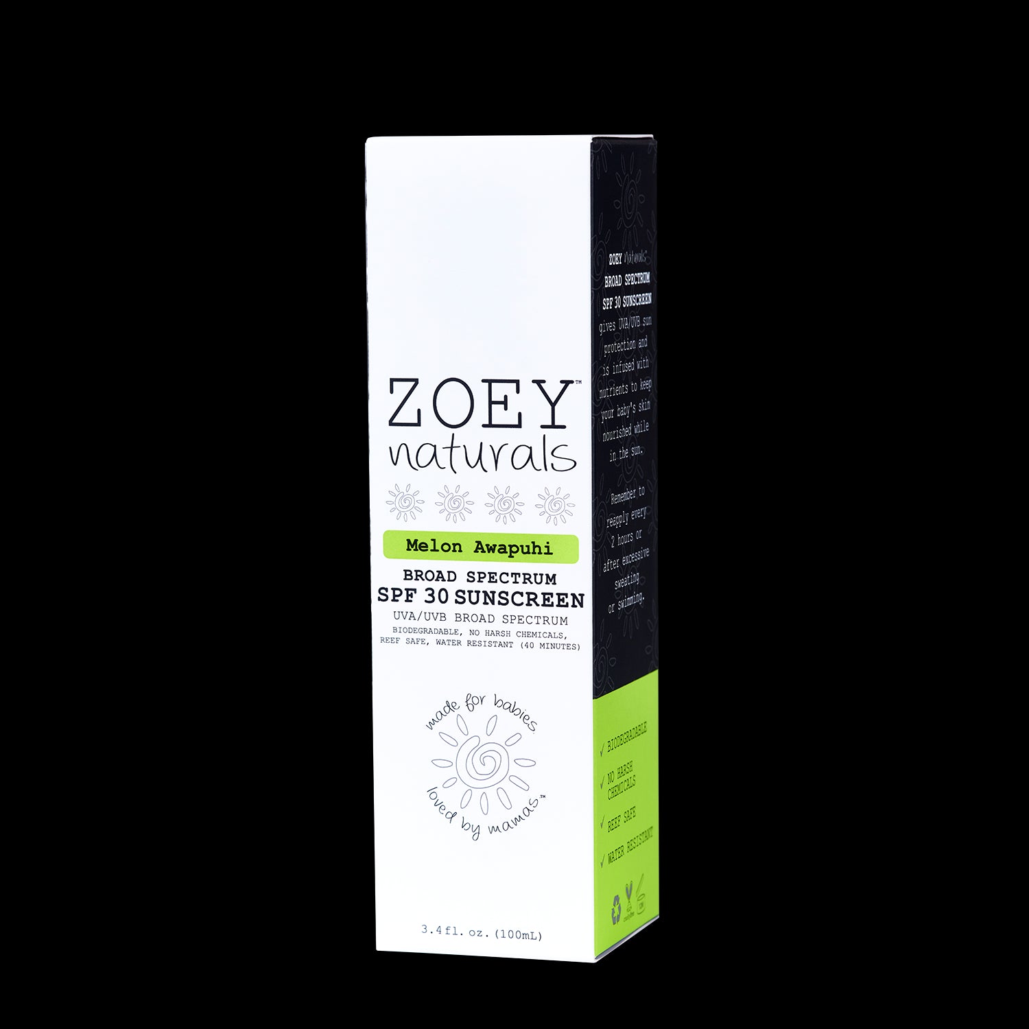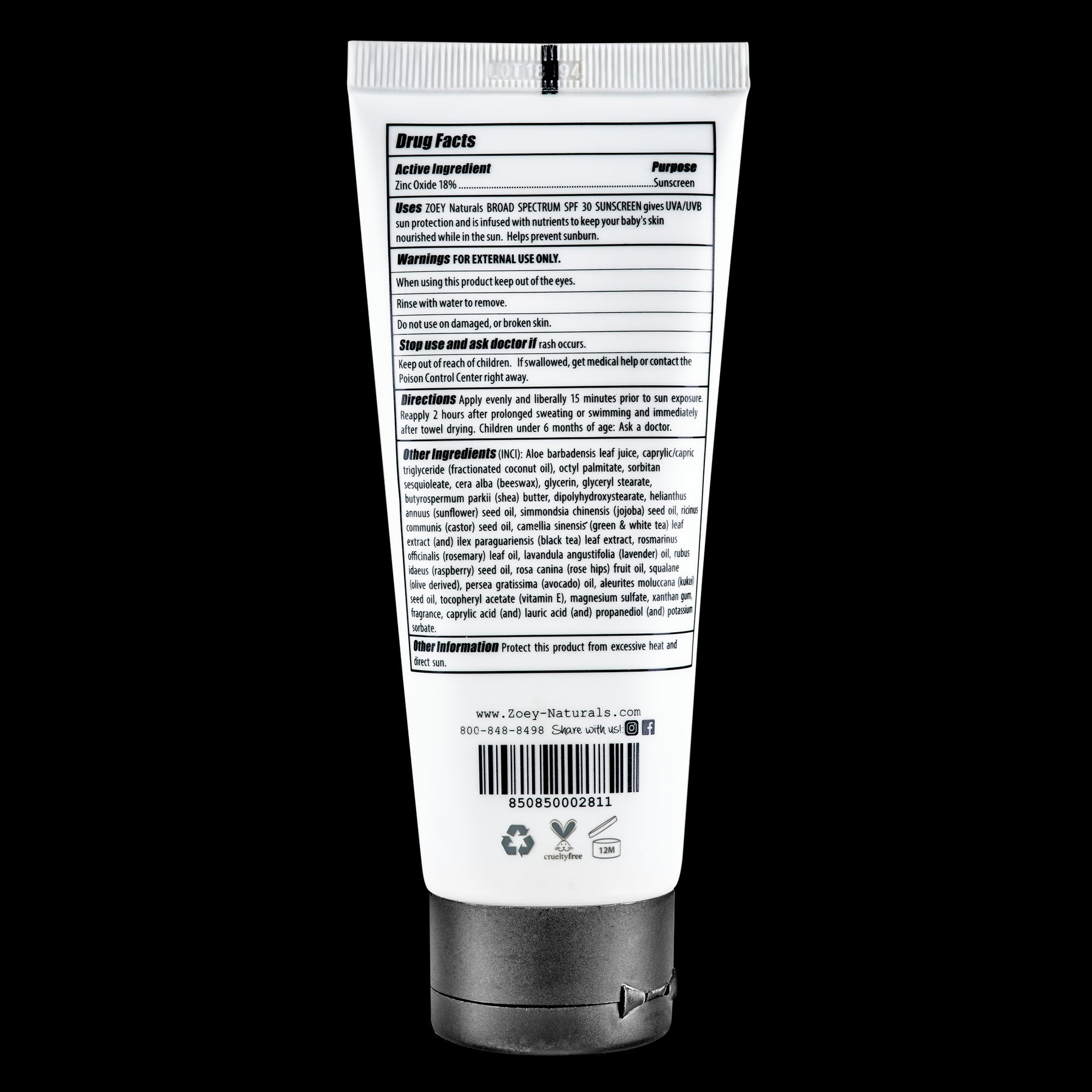 Zoey Naturals SPF 30 Mineral Sunscreen gives UVA/UVB sun protection and is infused with nutrients to keep your baby's skin nourished while in the sun.