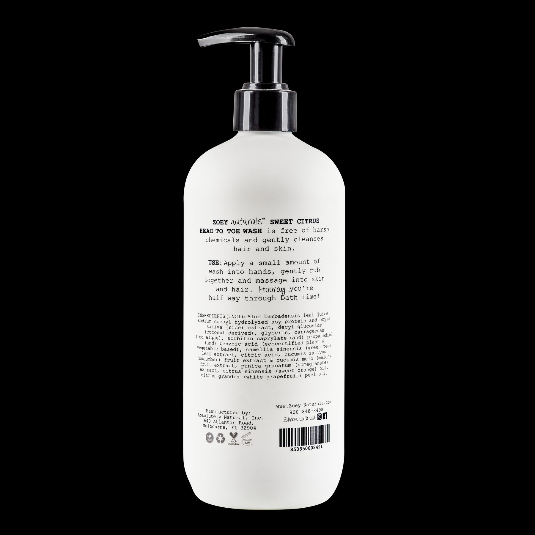 Our Sweet Citrus Head to Toe Wash is free of harsh chemicals and gently cleanses skin and hair. It's naturally gentle, tear free and has a gentle pH. Naturally scented with notes of sweet citrus. Zoey Naturals is formulated for babies and loved by mamas all around the world!