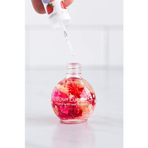 The prettiest cuticle oil around offers an all-natural way to easily care for and strengthen your nails. Hydrate and repair your dry cuticles with essential oils that feel good and smell so yummy in a pocket-sized bottle. Filled with dried, natural flowers, this blend of nurturing oils softens and conditions your cuticles and restores your nails to their natural beauty. Brush on the goodness with a fruity scent. Choose one or grab all five of our great vegan fruit-inspired scents.
