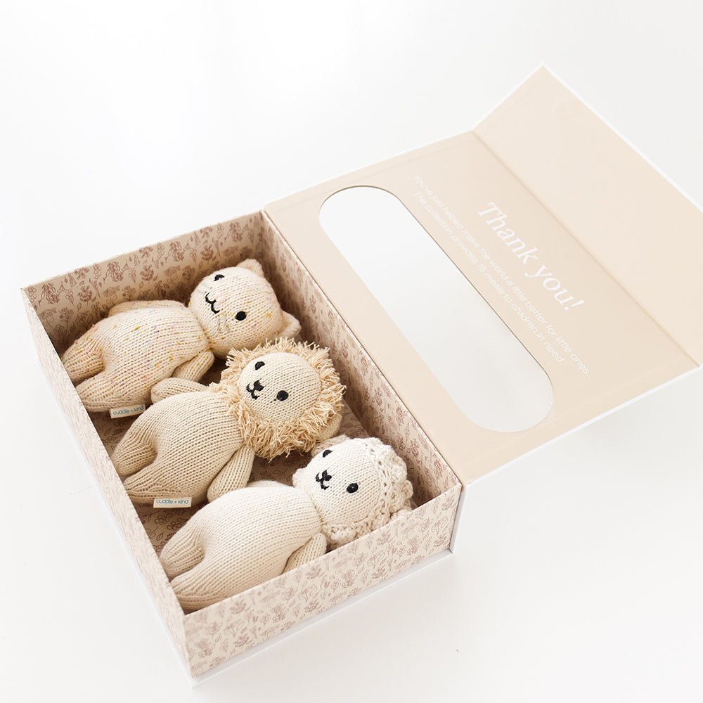 Curate your own unique set of 3 baby animals and receive a beautiful Collector’s Kit box for FREE, while quantities last. It makes a wonderful gift that will delight your little one.