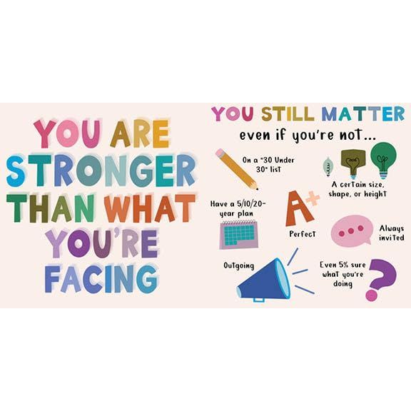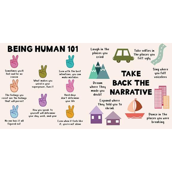 Sometimes all we need is a little boost of courage to stop should-ing ourselves and take back the narrative of our own life! From the popular Instagram account @iamhayleykaye, illustrator and mental health advocate Hayley Kaye encourages readers to care for themselves through brightly colored illustrations and messages.
