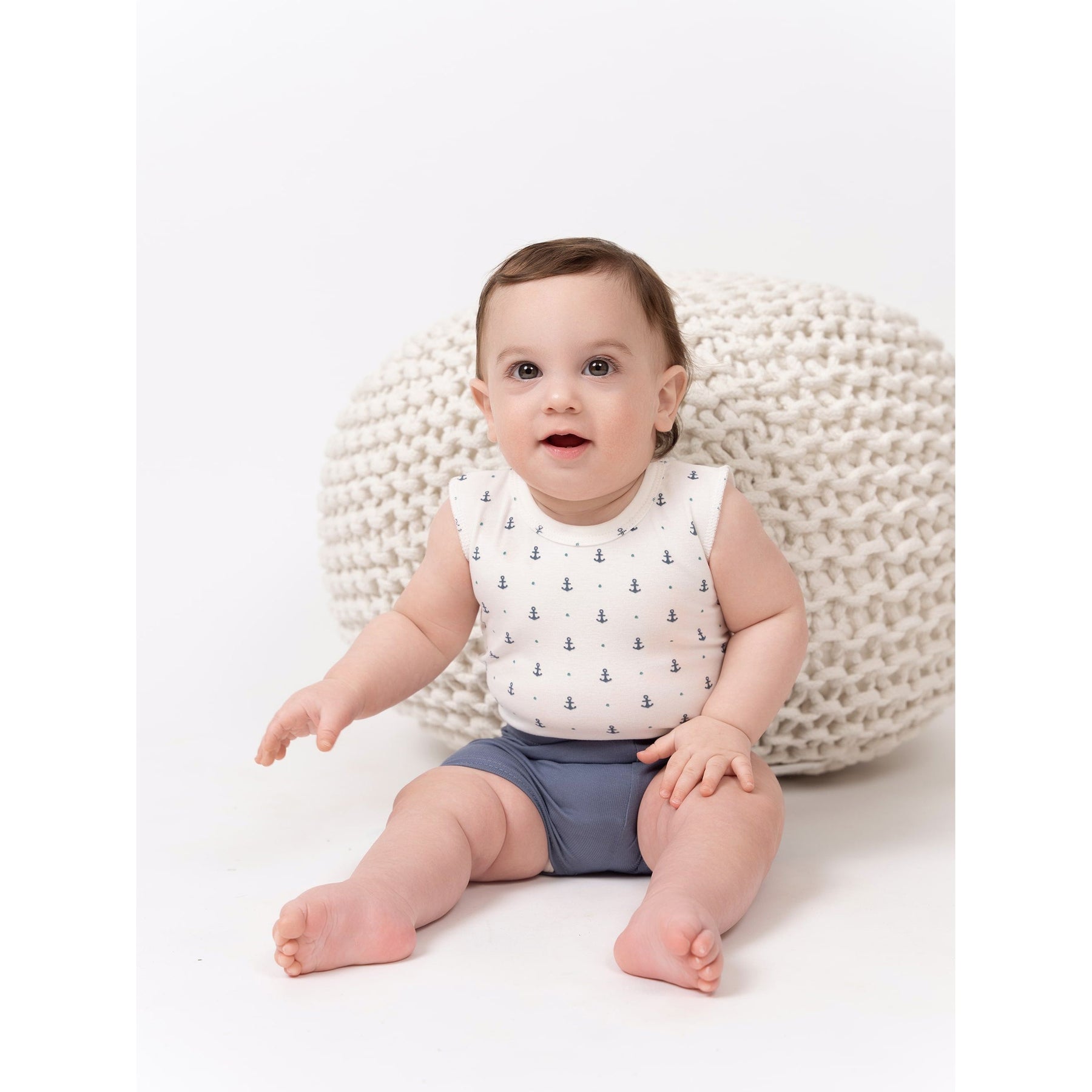 Maniere Boys Onesie Short Set, Crown/Denim Blue