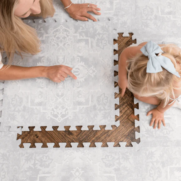 Create a safe and stylish sanctuary for your littles with Toddlekind's Prettier Puzzle Playmats – the perfect baby play mat that combines style and safety. Made from non-toxic EVA foam, this playmat provides a plush and cushioned surface for your children. With its expandable tiles and borders, it blends seamlessly into your home's decor. Step up your floor game with a Prettier Playmat designed for babies, toddlers and beyond.