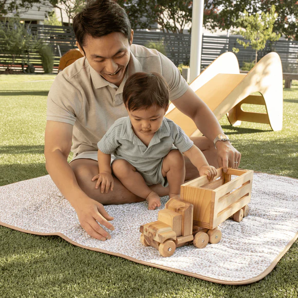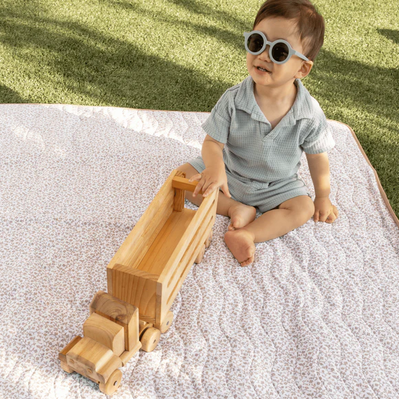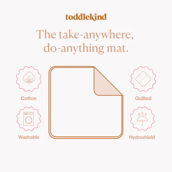 Introducing the Pretty Practical Playmat, the ultimate padded, splash mat for on-the-go families. Designed with an organic cotton top layer with water-resistant coating, this portable and convenient play mat provides a safe, diaper-free zone for your little one to explore.
