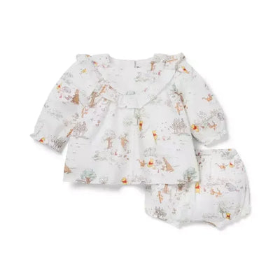 Janie and Jack Disney Pooh Toile Ruffle Long Sleeve Set, Multicolor
