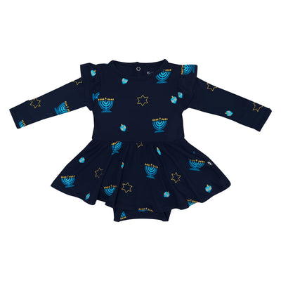Kyte Baby Long Sleeve Twirl Bodysuit Dress, Hanukkah