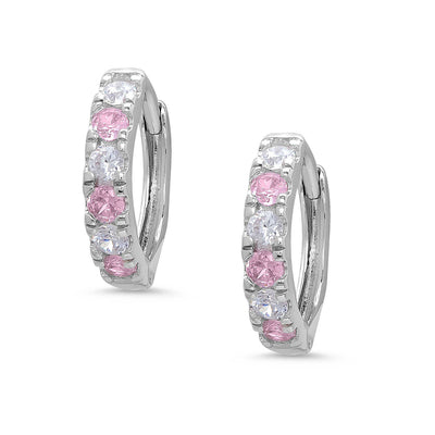 Lily Nily CZ Hoop 3MM Earrings, Pink & White