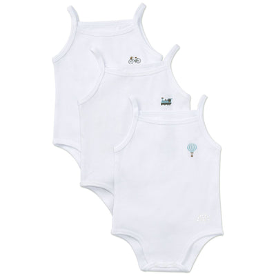 MeMoi Ribbed On The Move Boys Bodysuits 3 Pack, White-White-White