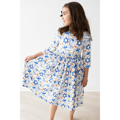 Mila & Rose Happy Hanukkah 3/4 Sleeve Pocket Twirl Dress