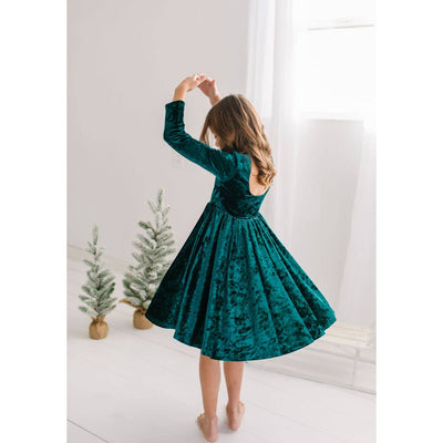 Ollie Jay - Gwendolyn Dress in Green Crushed Velvet | Girls Dress