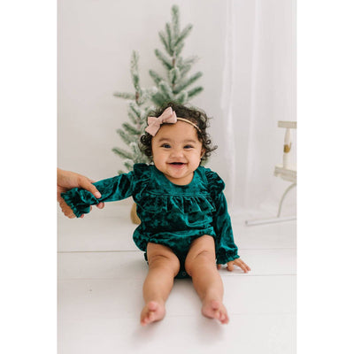 Ollie Jay - Hayley Romper in Green Crushed Velvet | Baby Clothing