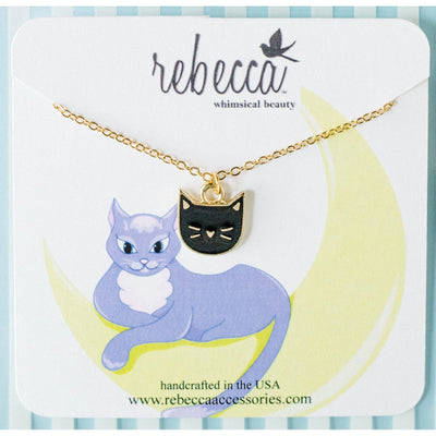 Rebbeca Accessories Black Cat Enamel Charm Necklace
