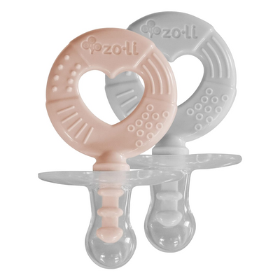 ZoLi Binki.T Pacifier+Teether All in One | Silicone Orthodontic Shape Pacifier with Fun Textured Teething Handle, Circle, 0-6 Months - Blush/Ash Grey