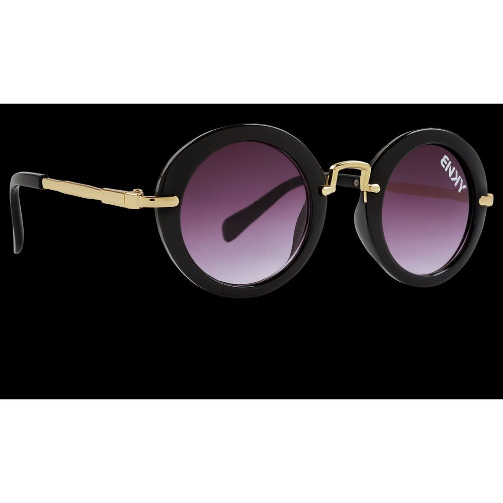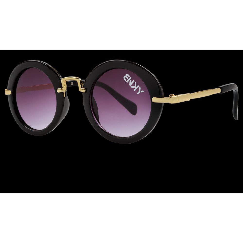 Our Hazel sunglasses have dark black rims with a dark/clear purple colored reflective lens. Our BNKY logo is present on the left lens. Size fits best for kids in the 18 months - 5 year range.