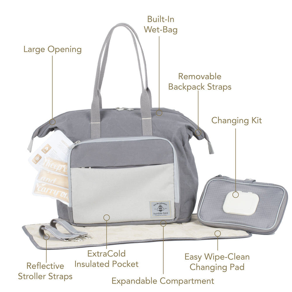 Whether you are taking the kids to a picnic or a hike, our Boundless Charm diaper bag is the only bag you need. The compact profile expands, offering you 25% more capacity when you need it. Designed with the perfect pockets, a quick-access front pocket for parent essentials, an extra-large insulated pocket for bottles or snacks, and a built-in wet bag that keeps everything protected inside and out.