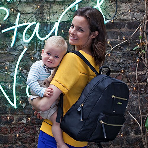The Charlie is a sleek and stylish backpack and comes with an insulated fab(food and bottle) bag to help keep liquids/food warm or cool for up to 4 hours, padded changing mat and built in strollerclips on the shoulder straps of backpack. The backpack features two external zipped front pockets, the larger of which is water-resistant and wipe clean. Inside, there are two interior elasticated pockets for storage, a larger elasticated pocket for storing your favorite electronic and a zipped pocket for valuables.