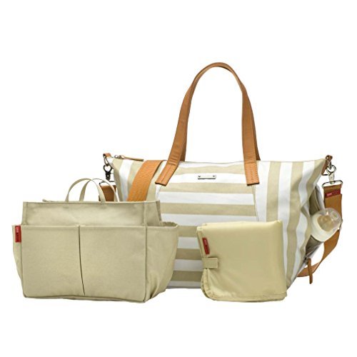 Made from premium wipe clean coated canvas and premium leather handles backed with webbing for anti slip. Includes a Mini Organizer bag with five outer pockets and one large internal zipped compartment. Comes with stylish D rings for easy stroller attachment to be used with long detachable bag strap with integrated stroller straps.