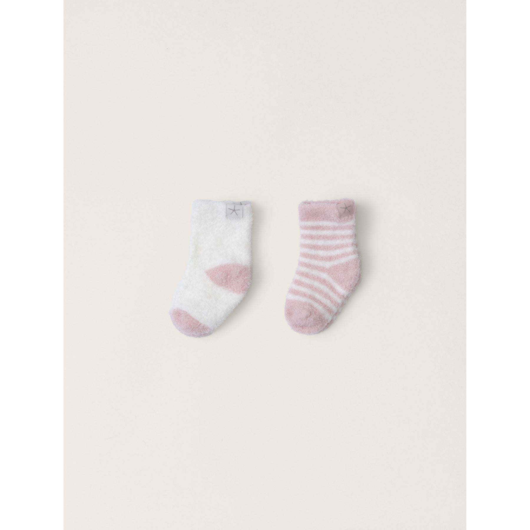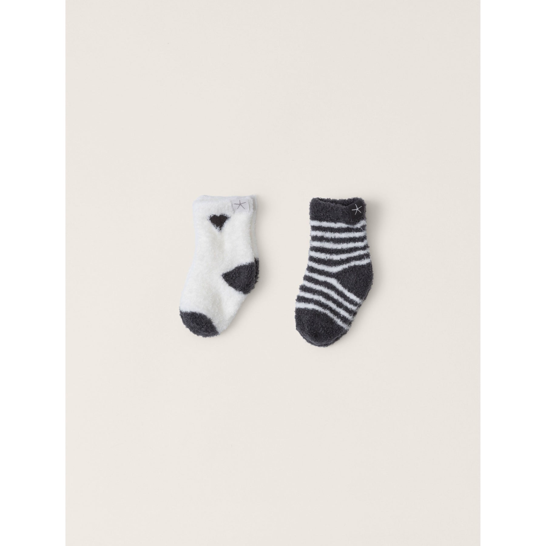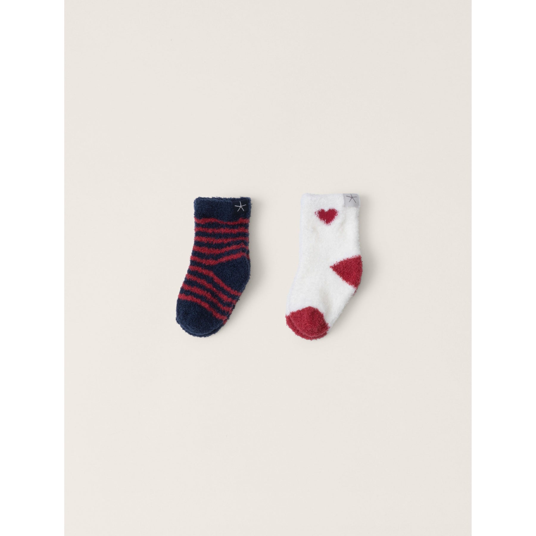 Introduce your baby to ultimate comfort with our Cozychic Lite® Baby Heart Sock Set. This 2 pack sock set includes a jersey/jacquard striped sock and a jersey stitch sock with a jacquard heart detail at the ankle, plus contrast colored heels and toes.