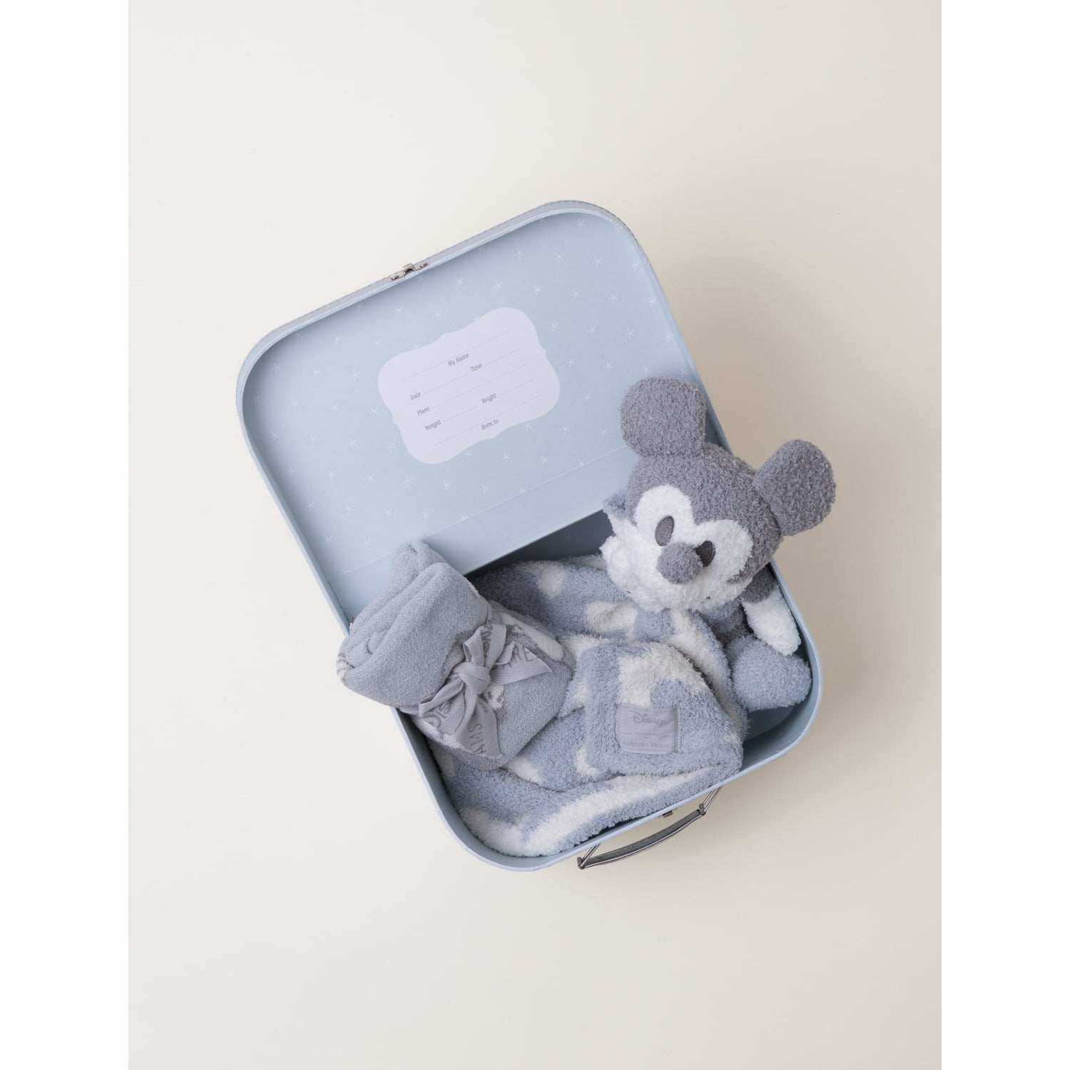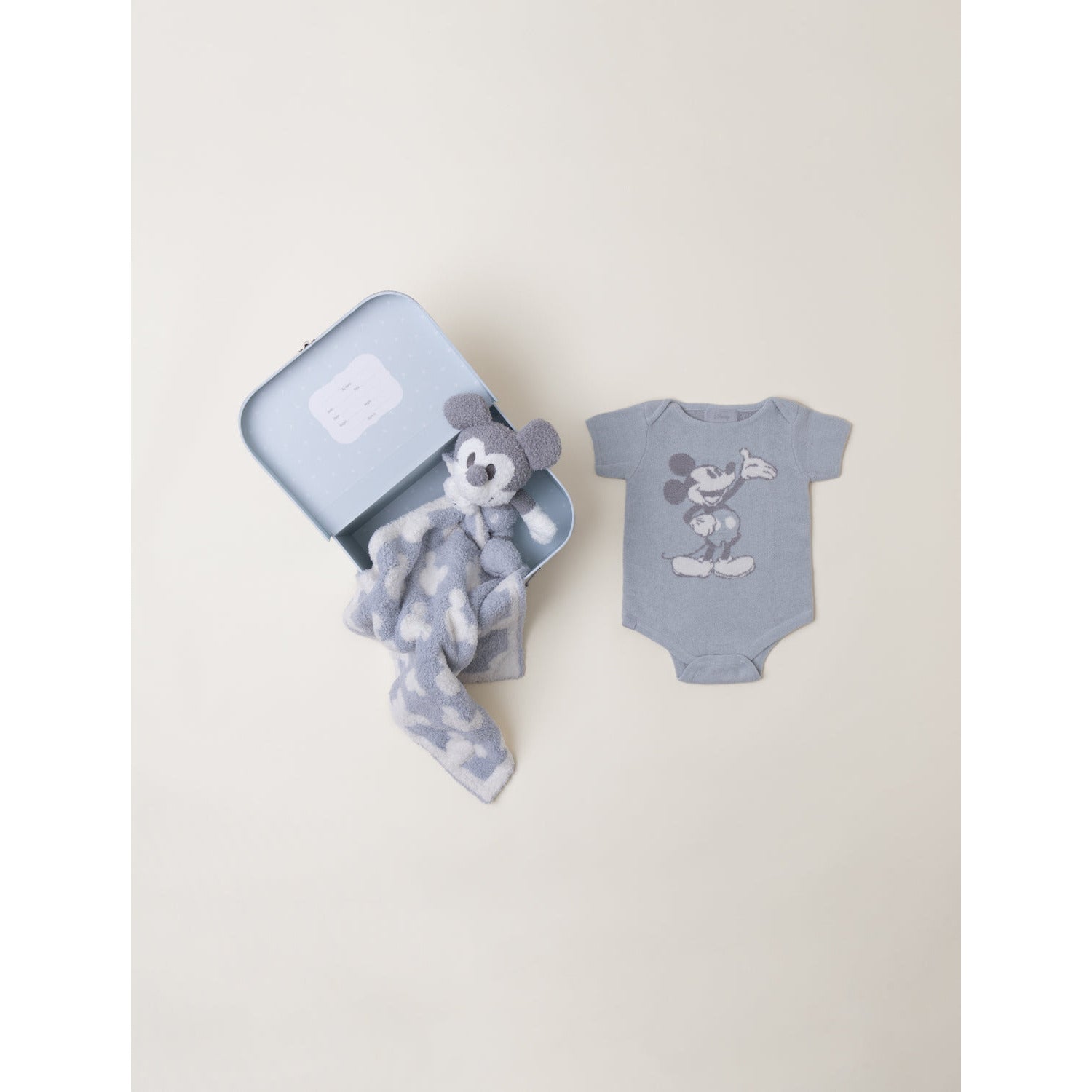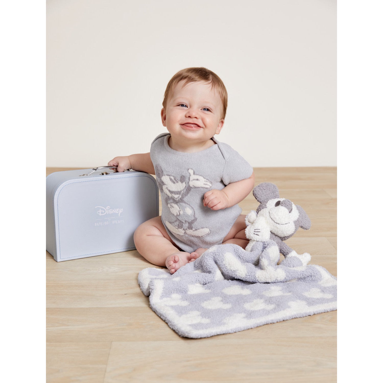 Snuggle up with fan favorite Disney Mickey Mouse™ in this adorable gift set. Set includes a CozyChic Ultra Lite short sleeve onesise, snap closures at bottom, Mickey Mouse jaquard design, and a CozyChic Mickey buddie holding on to a signature polka dot blankie. Packaged inside a special luggage box with metal clasp and handle. The luggage box doubles as a keepsake that details important info: name, date, time, place, height, weight, and born to. Model is wearing a size 6-12M.