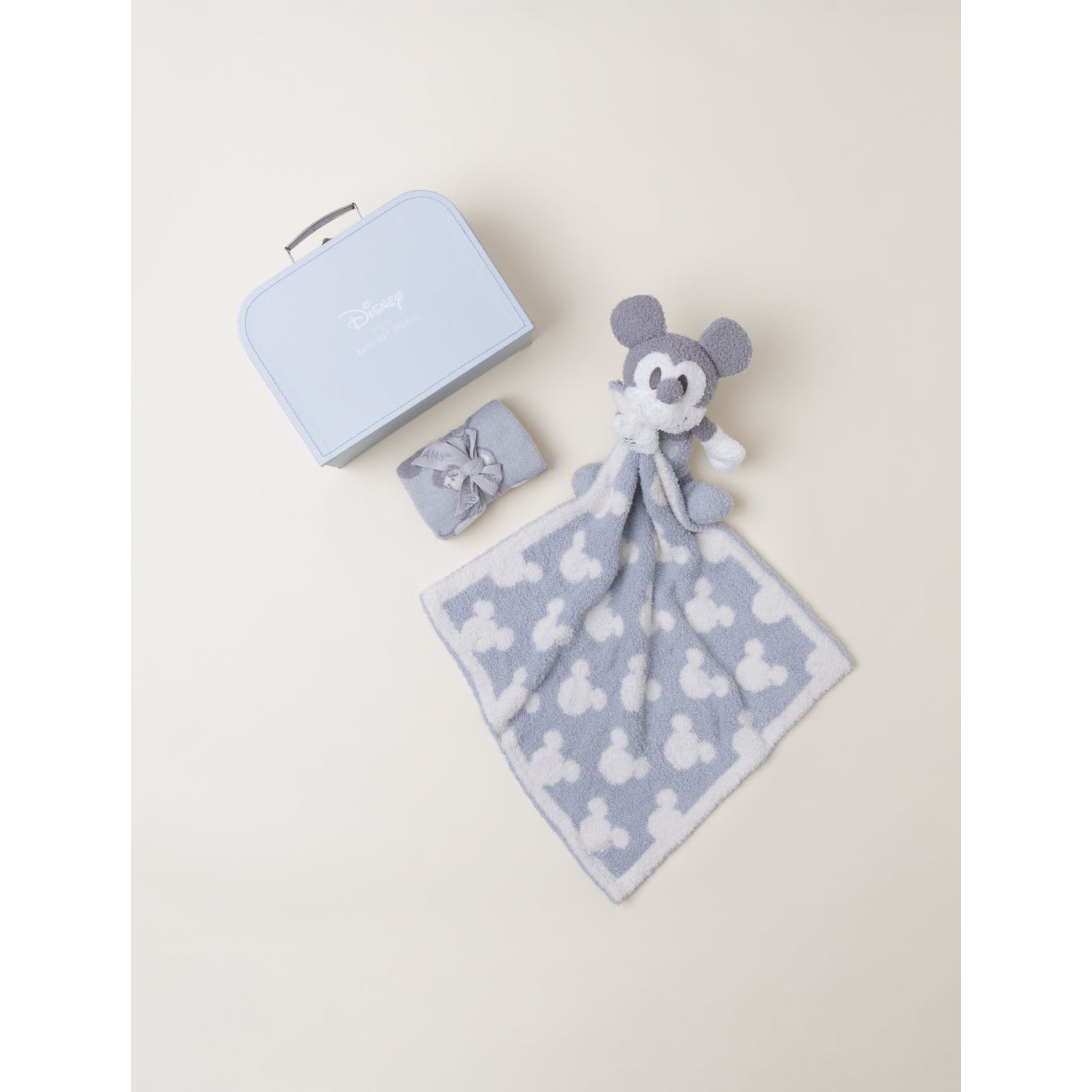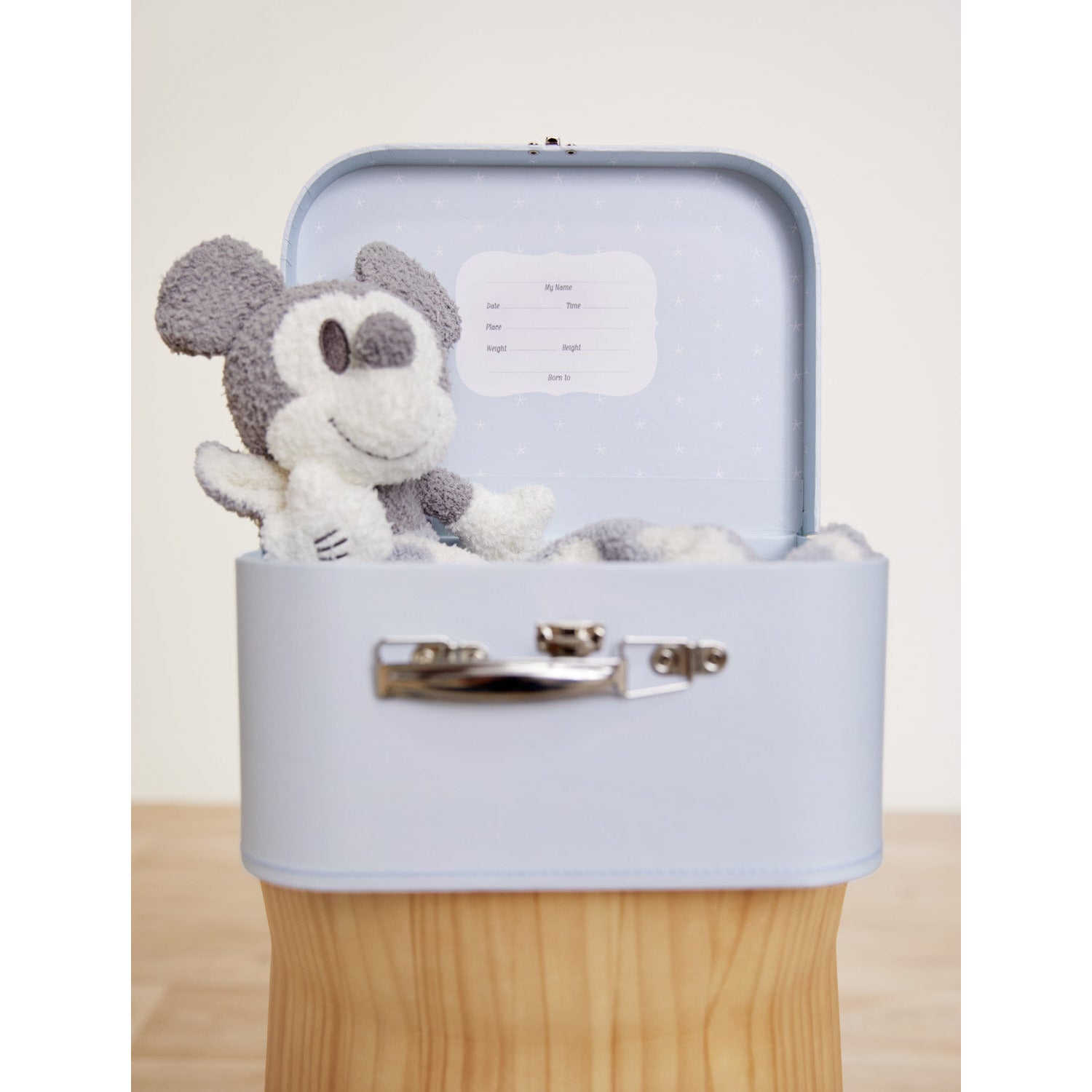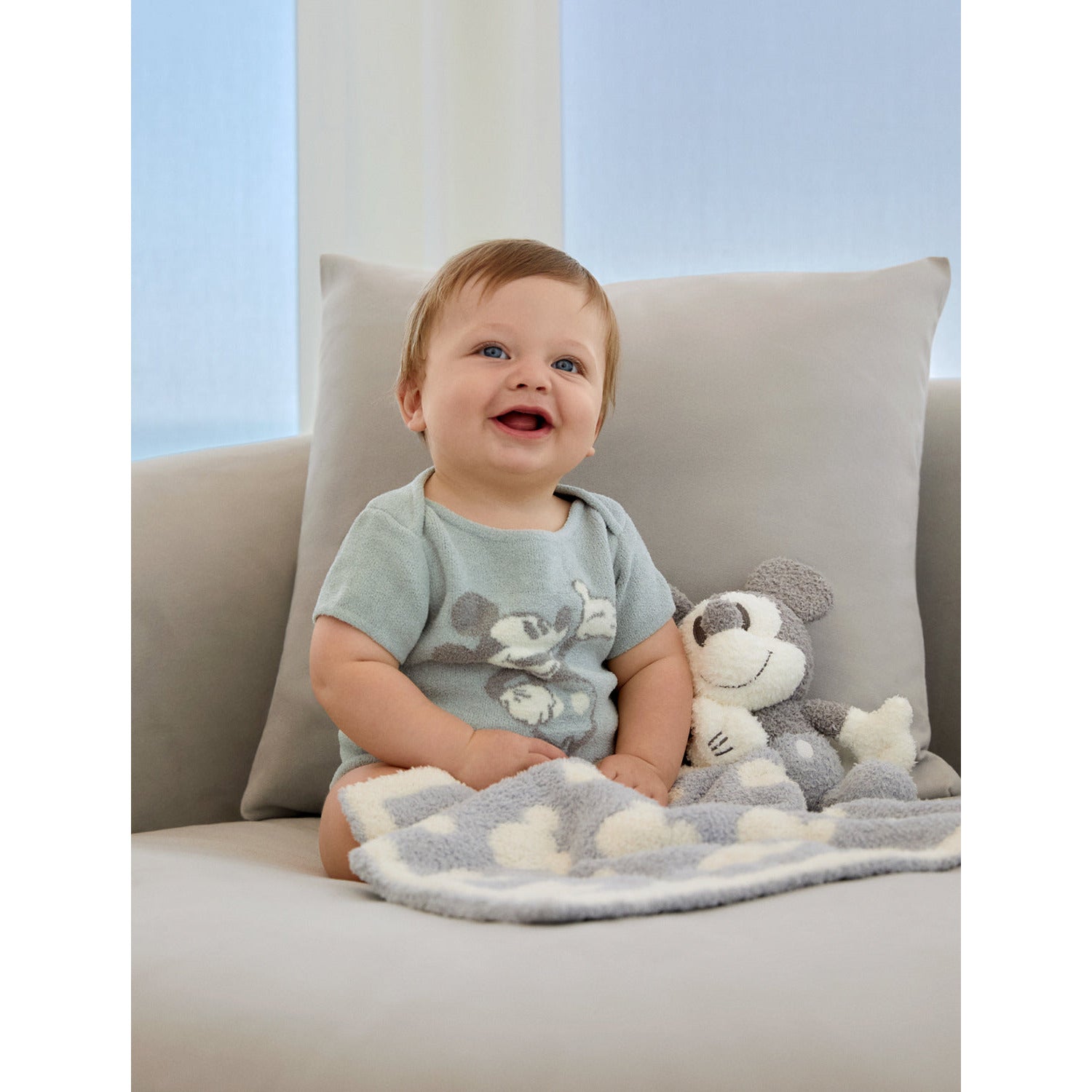 Snuggle up with fan favorite Disney Mickey Mouse™ in this adorable gift set. Set includes a CozyChic Ultra Lite short sleeve onesise, snap closures at bottom, Mickey Mouse jaquard design, and a CozyChic Mickey buddie holding on to a signature polka dot blankie. Packaged inside a special luggage box with metal clasp and handle. The luggage box doubles as a keepsake that details important info: name, date, time, place, height, weight, and born to. Model is wearing a size 6-12M.