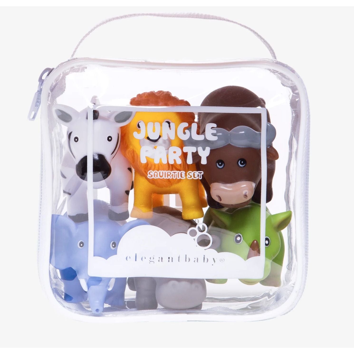 Get ready for lots of fun in the tub. Now, the party doesn't have to end when it's bath time for your little one! They're perfect for beach and pool time as well because our Party Squirtie Sets float and squirt water! Your little animal lover will simply adore the Jungle Party Squirties pack, which includes a zebra, lion, yak, elephant, hippo, and rhino.