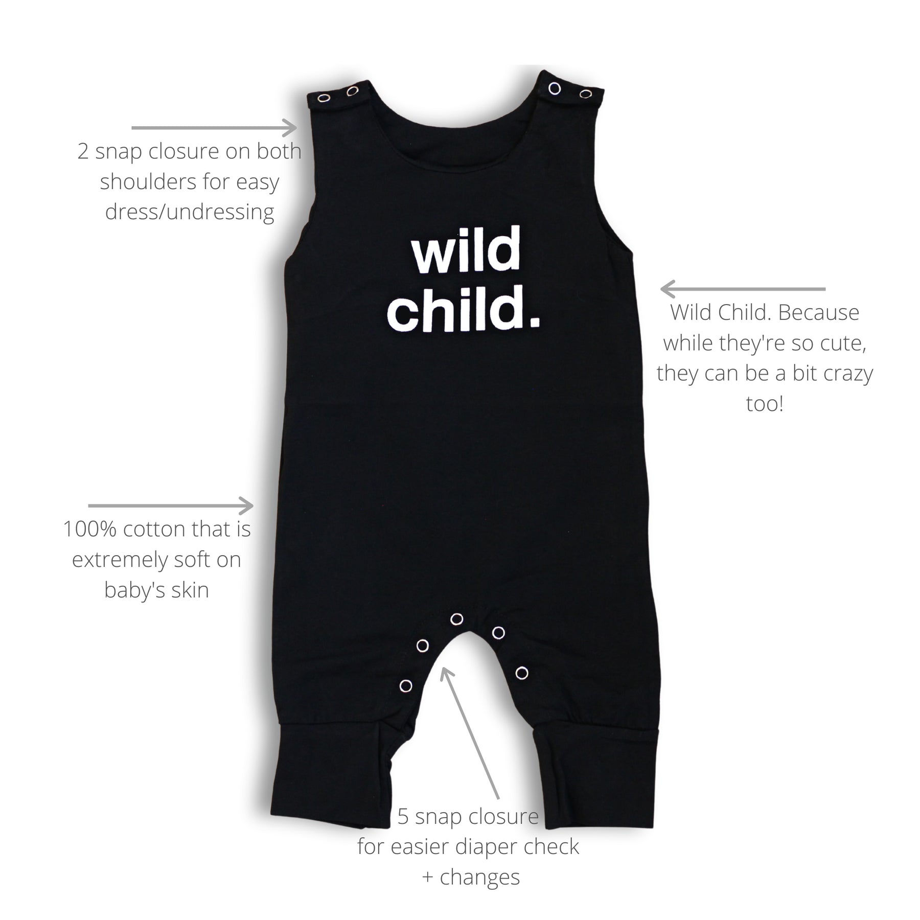 Denver James Baby Toddler Romper, Wild Child (Black)