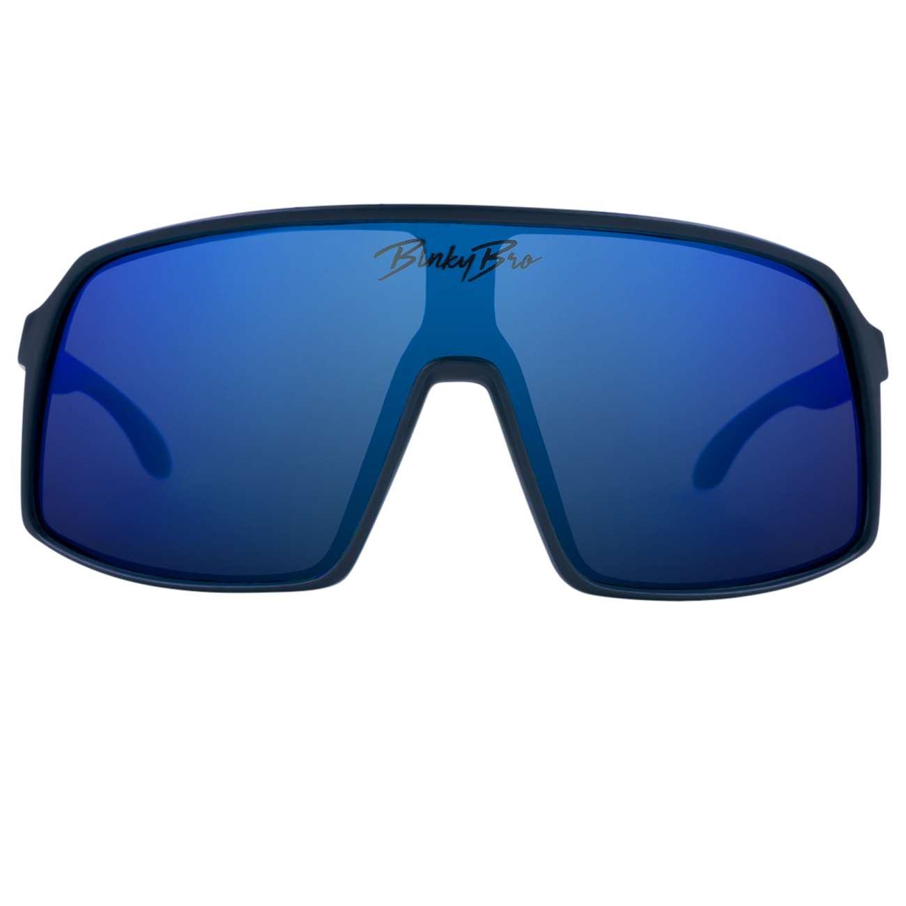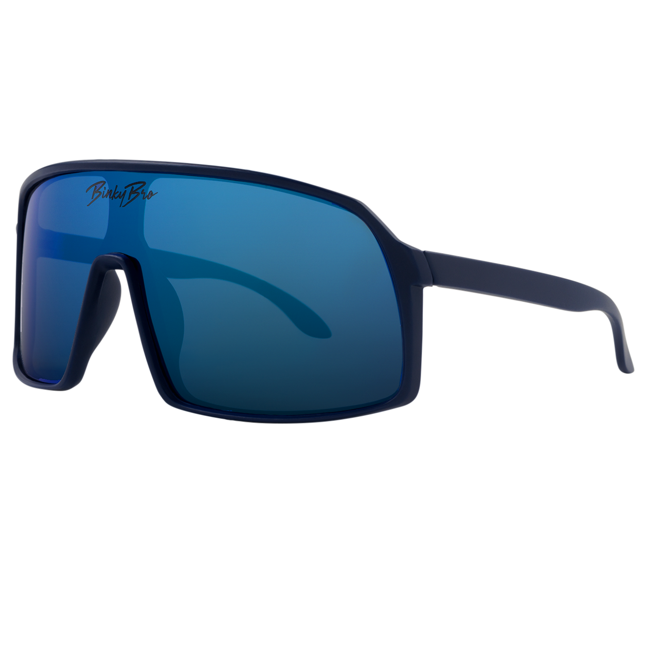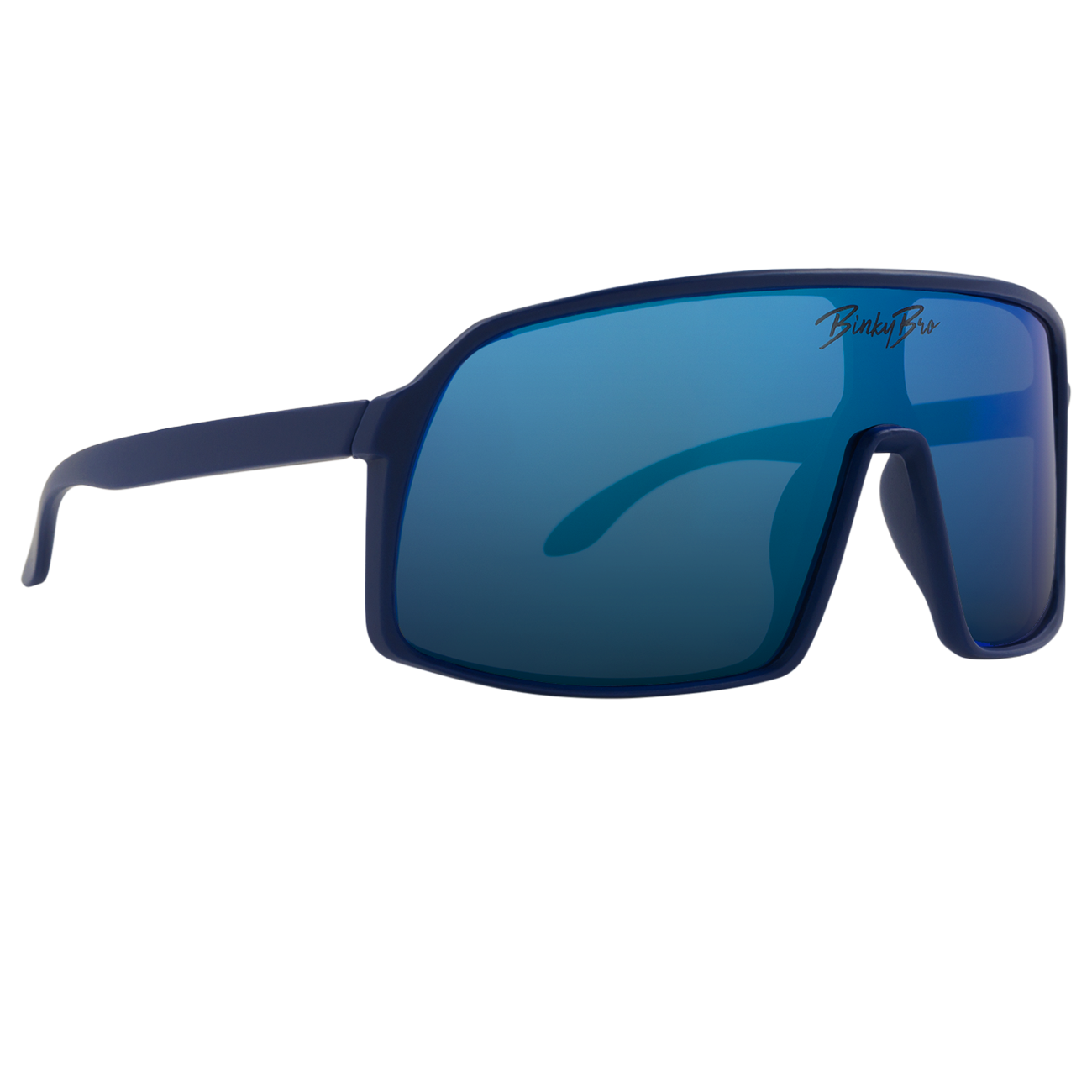 Our Monteverde Navy sunglasses have navy rims with a navy reflective colored lens. Our BinkyBro signature logo is present on the top-middle of the lens. Size fits best for kids in the 18 months - 5 year range.