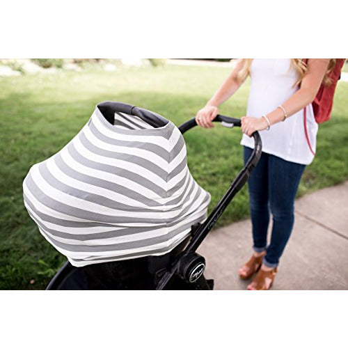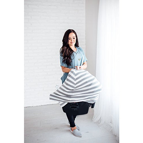 Copper Pearl™ multi-use 5-in-1 cover can be used as a car seat cover, a nursing cover, a shopping cart cover, a high chair cover, and an infinity scarf. This versatile cover is made of a high quality, stretchy, and durable fabric. The unisex, modern, and trendy fabric offers your baby protection from the elements such as wind, rain, snow, and bright light. It is quick and easy to put on and take off but snug enough that your little one can't kick it off while nursing. The cover is warm enough for the cold winter months and lightweight enough for the hot summer months. As a nursing cover, it provides full and adequate coverage for worry-free nursing. You no longer have to be nervous about nursing in public or wherever you are. The stretchy fabric also allows you to easily access to your newborn while breastfeeding, to ensure a good latch or for any other adjustments. While you are shopping, this cover protects your little one from germ infested shopping carts, providing a great alternative to using antibacterial wipes every time you go to the store. One size fits almost all models of car seats, shopping carts, and nursing mothers. Compact when folded, the cover conveniently takes up little storage space in your diaper bag or purse. This nursing cover / car seat cover makes a perfect Christmas present or baby shower gift for new moms.