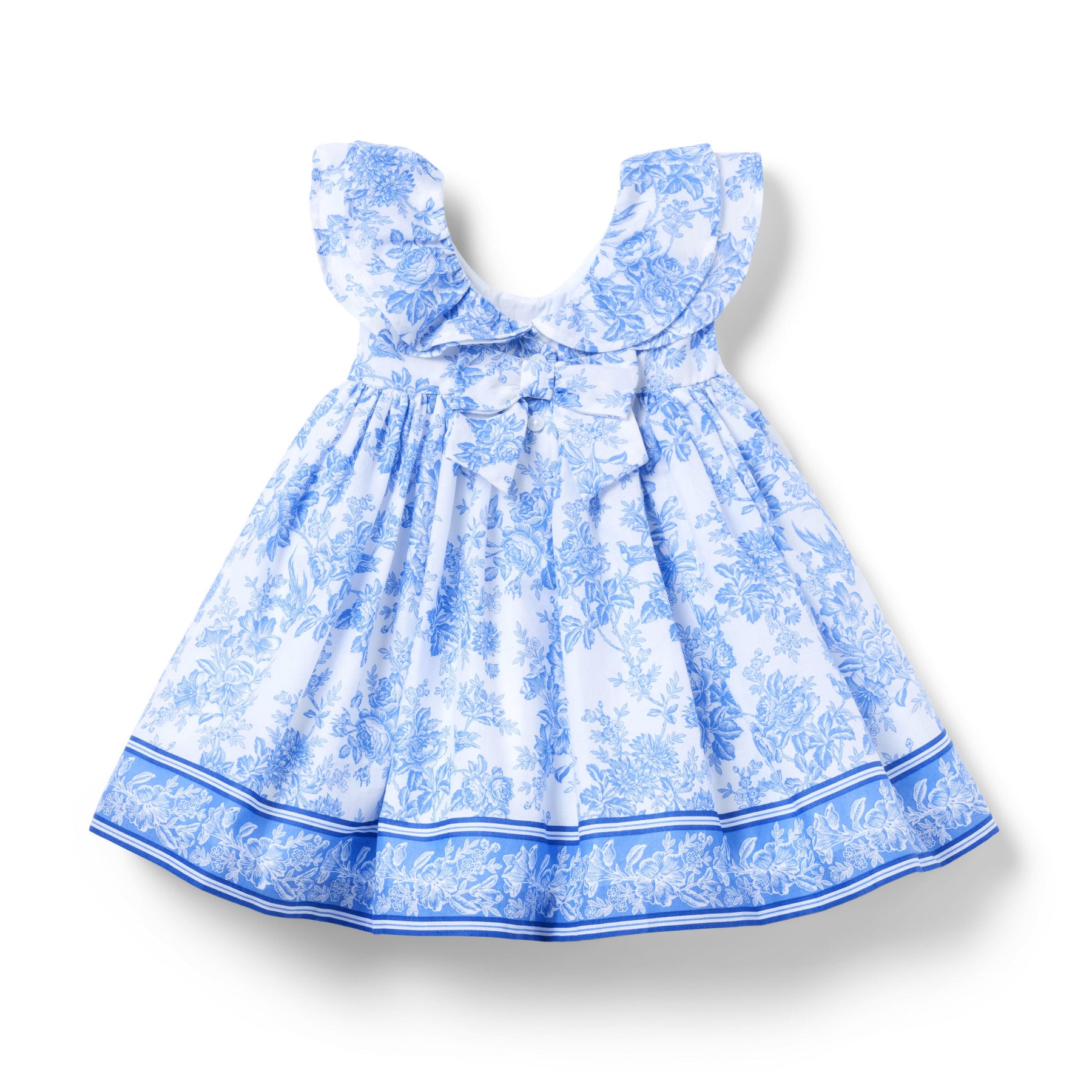 The perfect floral dress for first moments. Featuring a border print hem, a double ruffle collar and a back bow detail too.