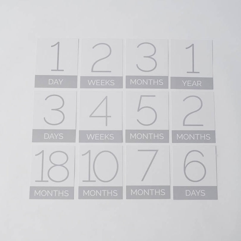 - milestone set includes cards for 1-6 days, 1-4 weeks, 1-11 & 18 months, and 1-2 years
