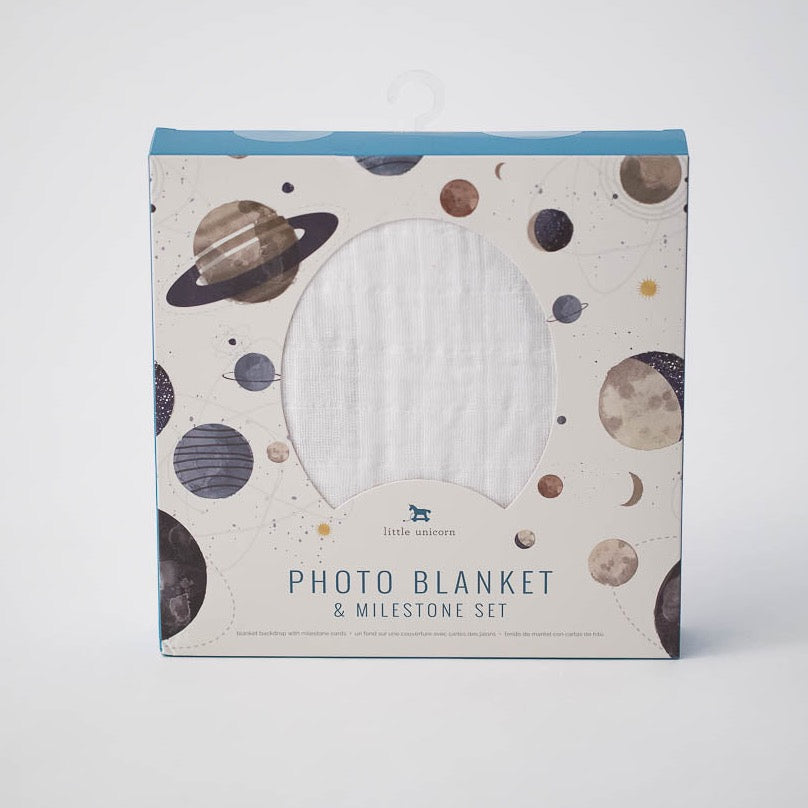 Easily document baby's first weeks, months and years with our versatile Photo Blanket & Milestone Set. Featuring our signature artisan illustrations and a ready-to-use baby age card set, each blanket offers a unique photo backdrop for scrapbooks and social media sharing. Perfect for swaddling, nursing, and snuggling between photo ops, too!